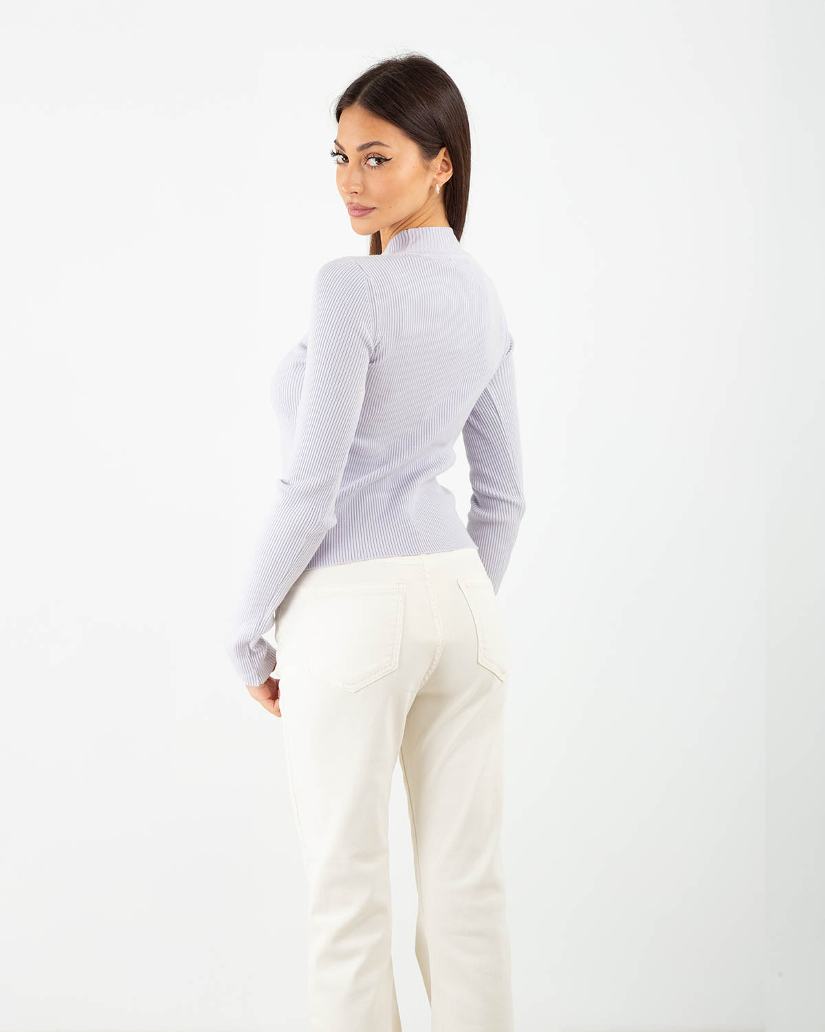 Dettagli: Caldo misto viscosa. Modello crop e aderente. Lavorazione a costine. Perfetto in layering sotto giacche e blazer.