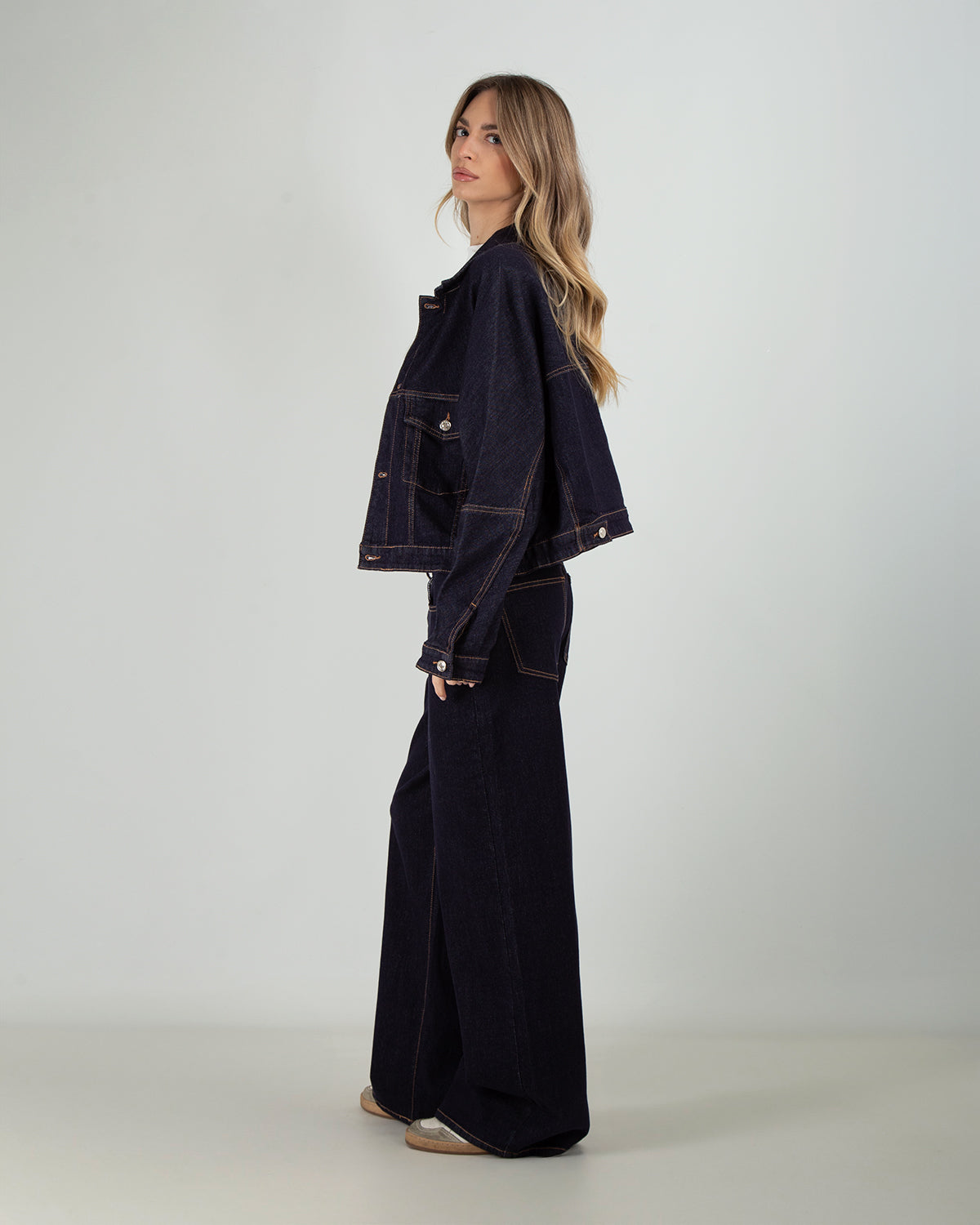 Il Giubbotto Denim Over Blu Scuro è un must-have intramontabile, reinterpretato con una vestibilità over che dona carattere e contemporaneità al look. Realizzato in denim blu scuro, è ideale per la mezza stagione e perfetto da indossare sopra t-shirt, felpe o abiti leggeri. Le taschine frontali aggiungono praticità e completano il design con un dettaglio classico che richiama lo stile denim tradizionale. Facile da abbinare, si presta a look casual da giorno con jeans coordinati oppure a contrasti più femminili con gonne e abiti fluidi. Un capo versatile, pensato per chi ama uno stile rilassato ma curato.