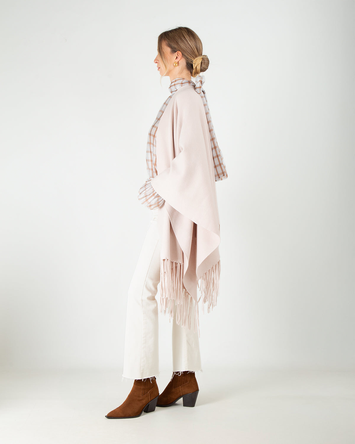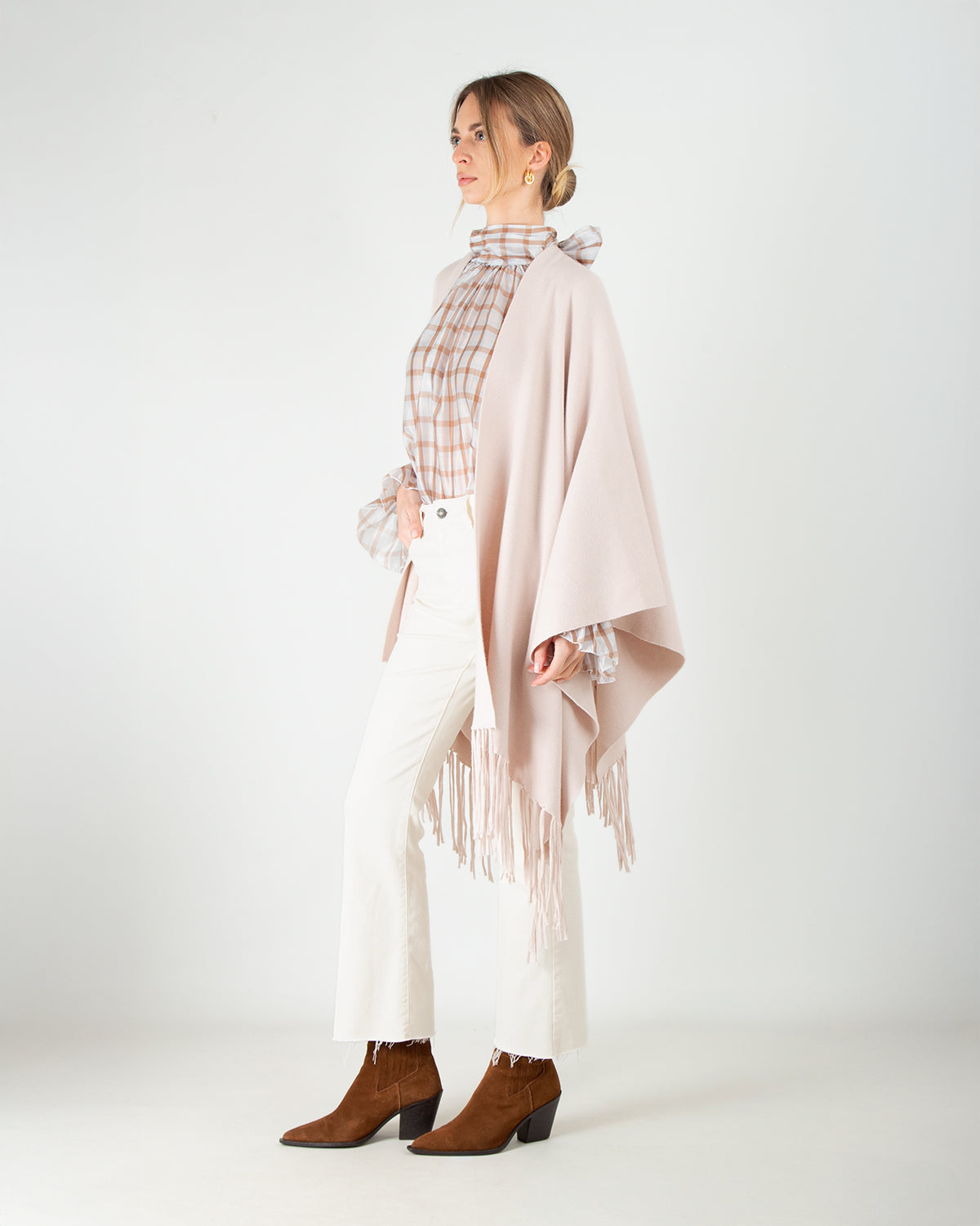 Dettagli: Mantella con frange. Tessuto morbido e caldo in misto viscosa. Vestibilità over. Linea fluida che dona movimento.