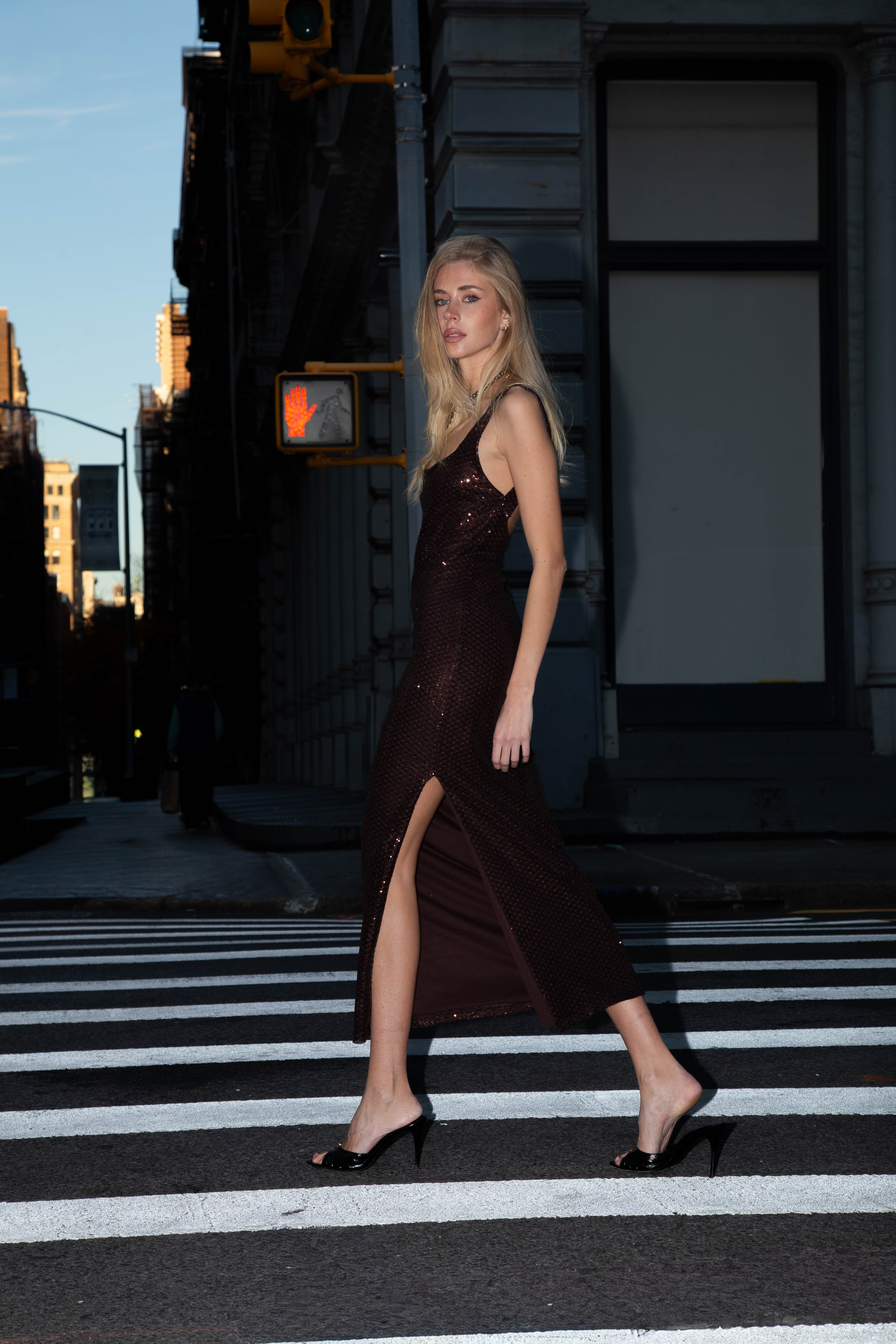 L’Abito lungo in micro paillettes è pensato per le feste, con un design che unisce brillantezza e raffinatezza. La scollatura profonda sulla schiena aggiunge un dettaglio sensuale e sofisticato, mentre la silhouette lunga valorizza la figura e garantisce movimento elegante ad ogni passo. Un abito ideale per serate festive, eventi serali e momenti in cui vuoi brillare con stile.