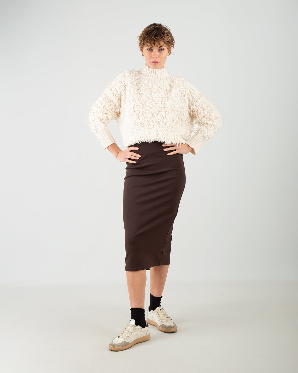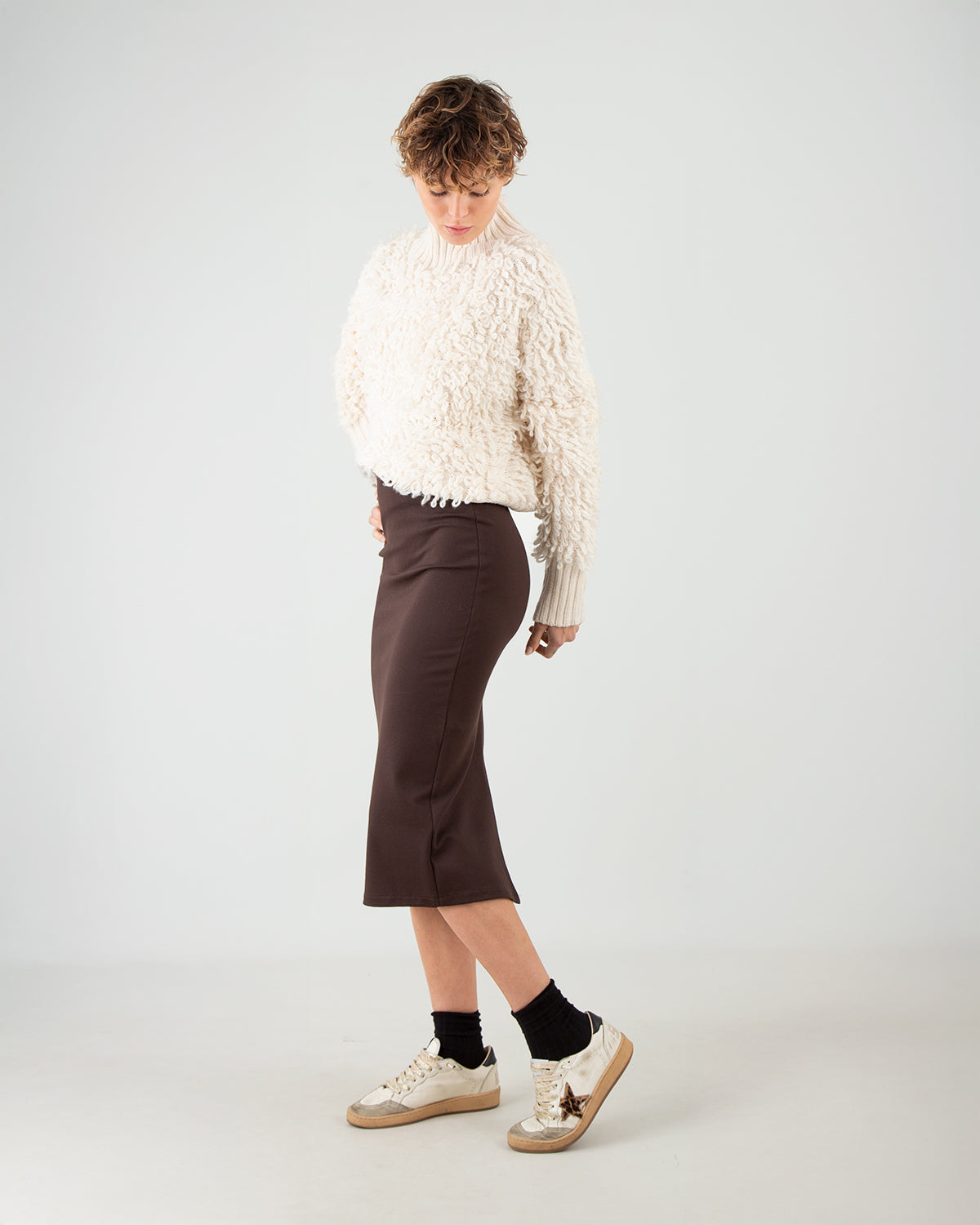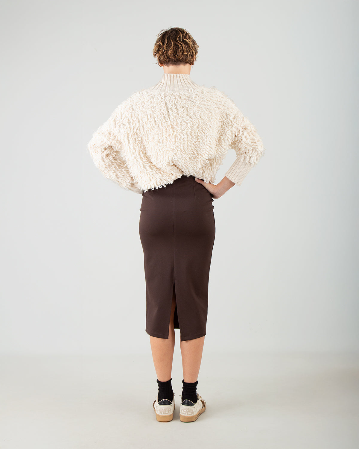 Questa Gonna Longuette unisce semplicità ed eleganza in un capo essenziale del guardaroba. Le due piccole cuciture sul retro offrono struttura e un miglior supporto alla silhouette, mentre il piccolo spacco posteriore dona movimento e comfort nella camminata. Morbida, comoda e incredibilmente versatile, è perfetta sia per look quotidiani raffinati che per outfit più formali.