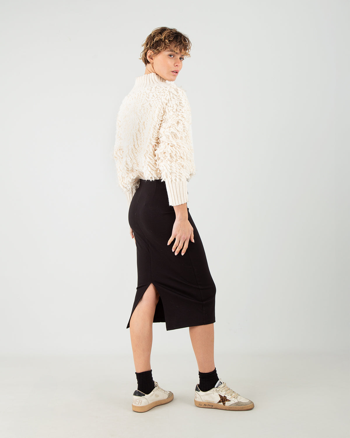 Questa Gonna Longuette unisce semplicità ed eleganza in un capo essenziale del guardaroba. Le due piccole cuciture sul retro offrono struttura e un miglior supporto alla silhouette, mentre il piccolo spacco posteriore dona movimento e comfort nella camminata. Morbida, comoda e incredibilmente versatile, è perfetta sia per look quotidiani raffinati che per outfit più formali.
