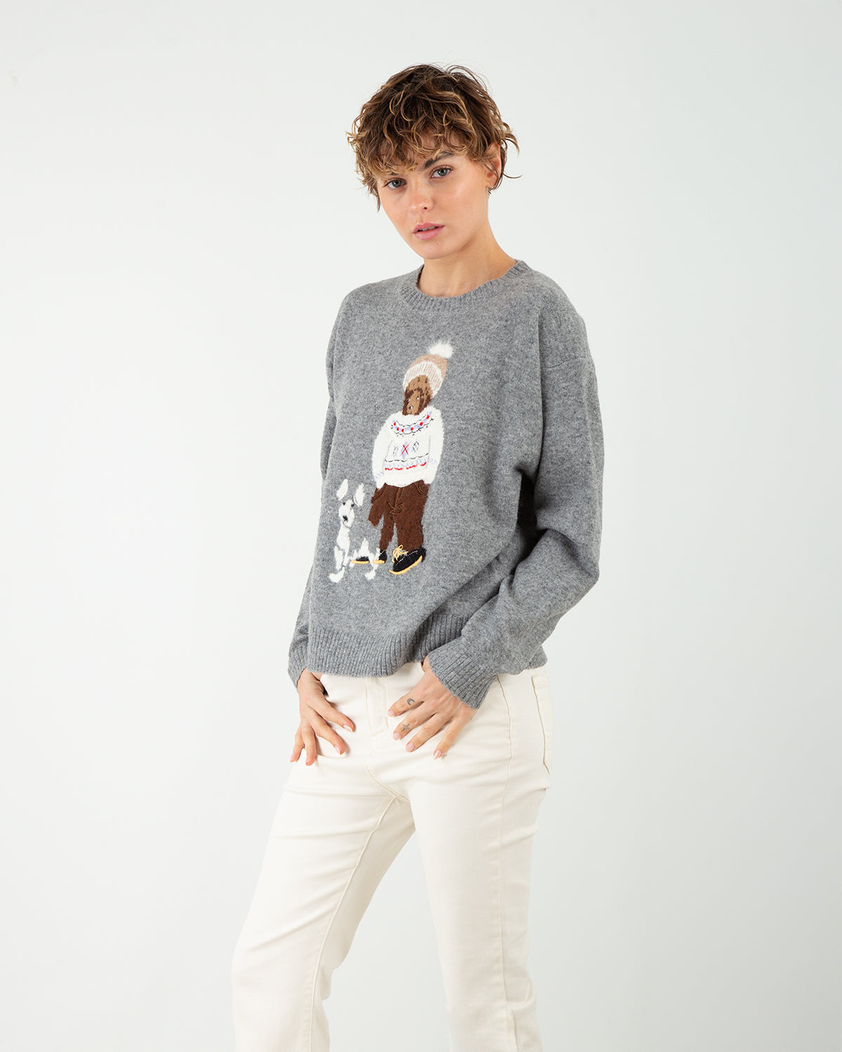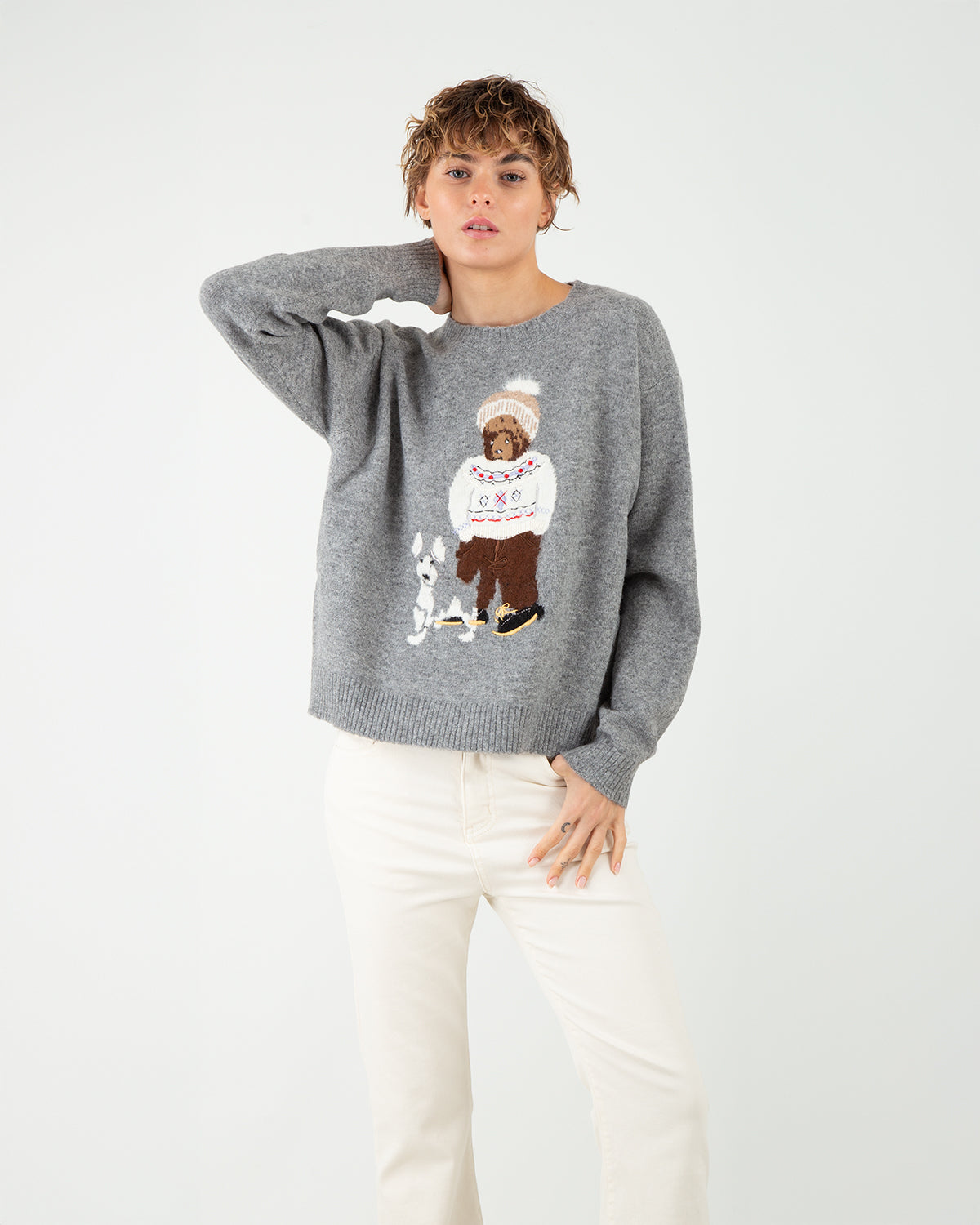 Il Maglione Orsetto è il capo perfetto per portare un tocco di dolcezza nella stagione fredda. Realizzato in un filato morbido e caldo, avvolge con comfort e leggerezza. Il girocollo classico lo rende facile da abbinare, mentre il ricamo dell’orsetto cozy aggiunge un dettaglio speciale, perfetto per creare look invernali allegri e temi festivi. Un maglione che scalda, fa sorridere e illumina ogni outfit.