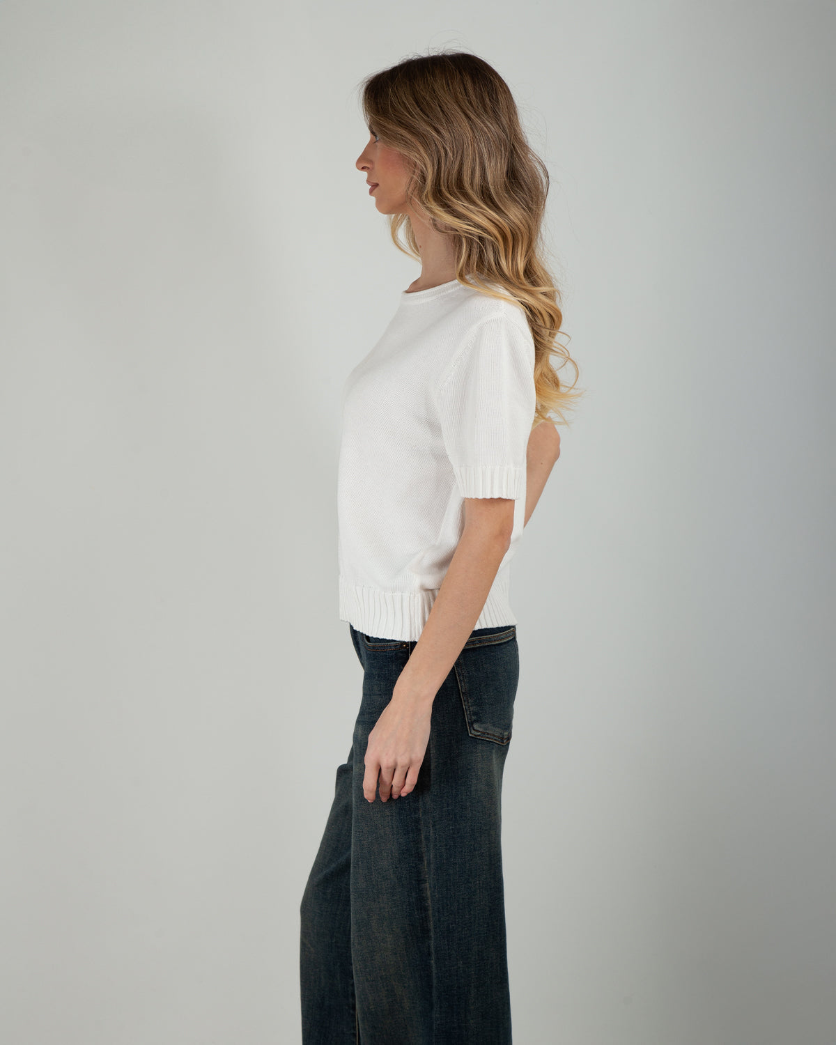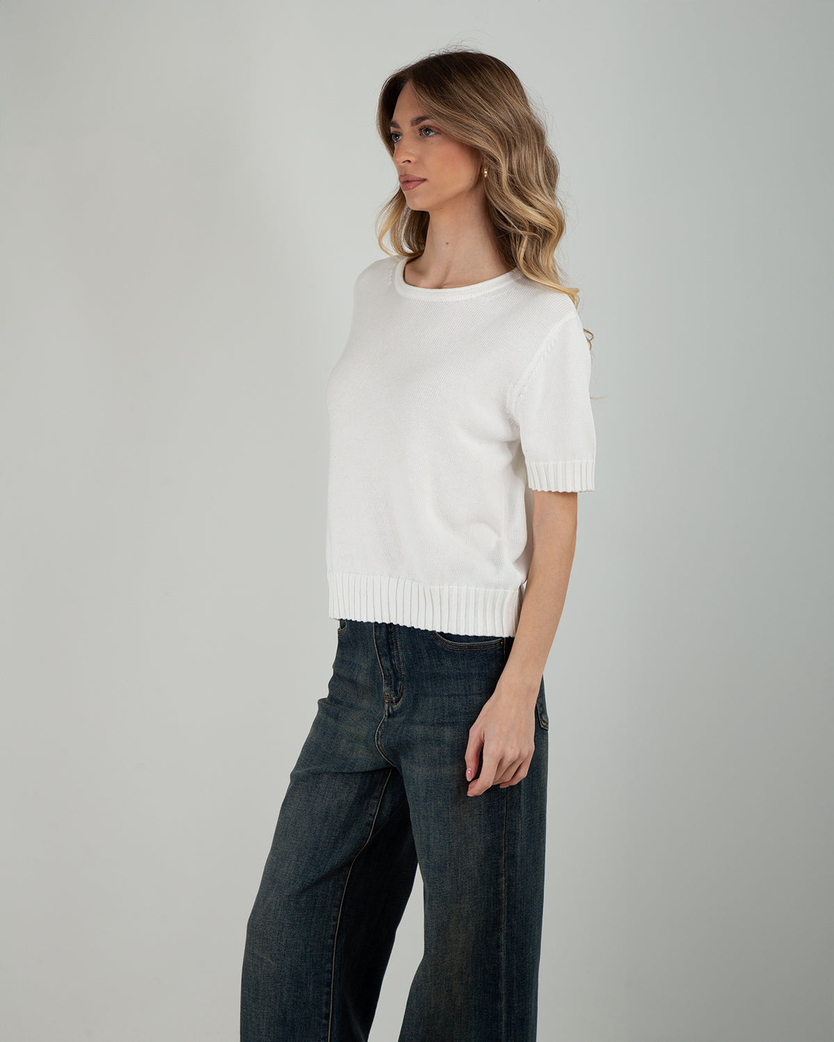 Dettagli: Maglia manica corta. 100% cotone. Bordi a costine su fondo e maniche. Chiusura con bottone sul retro. Stile essenziale e versatile