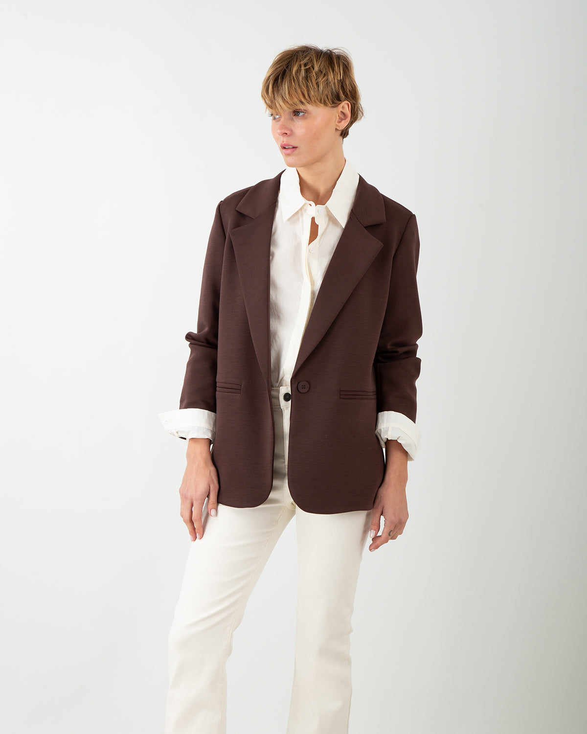 Dettagli: Tessuto scuba compatto e confortevole. Taglio dritto e vestibilità regolare. Rever classico e chiusura monopetto. Versatile: da occasioni eleganti a look quotidiani.