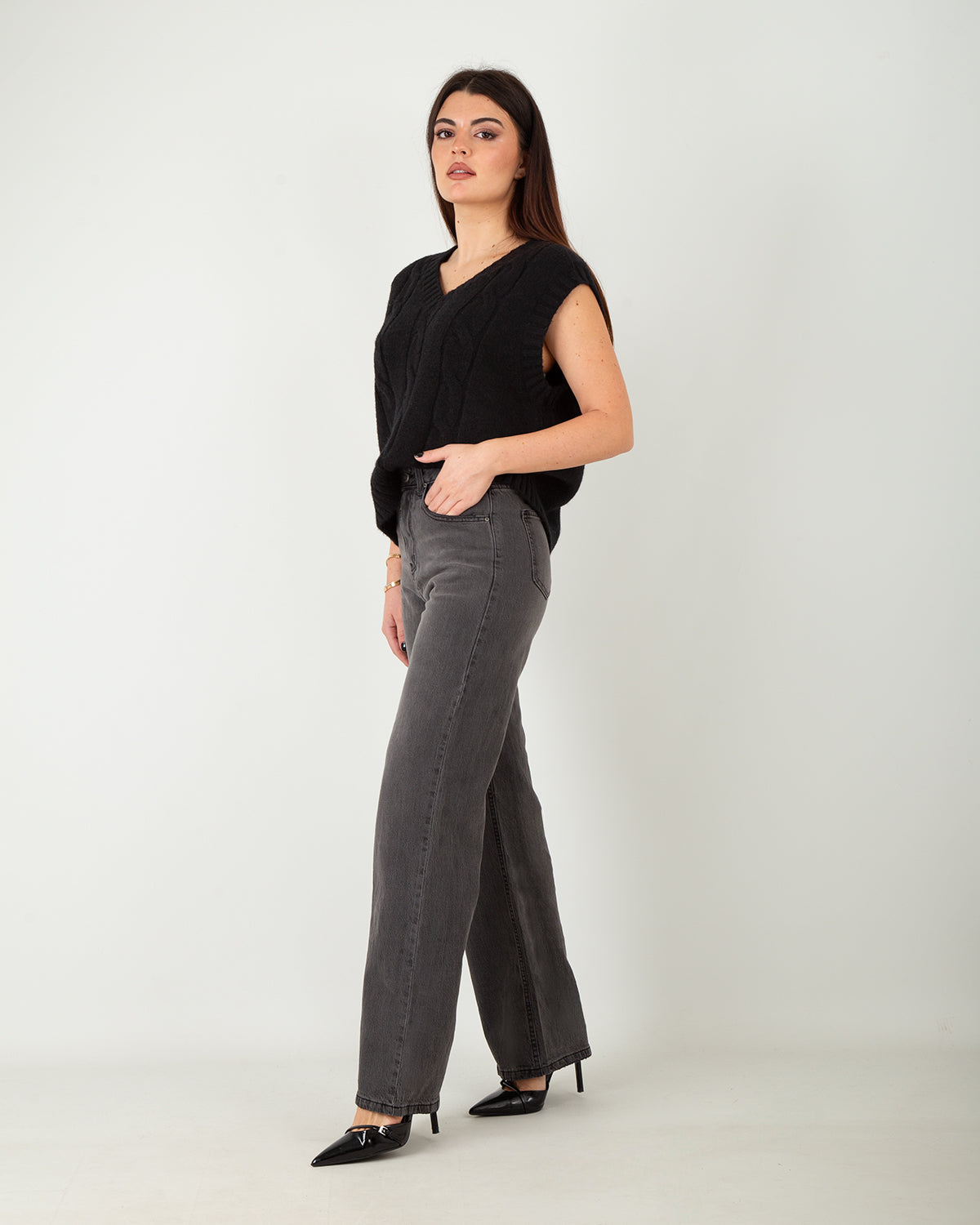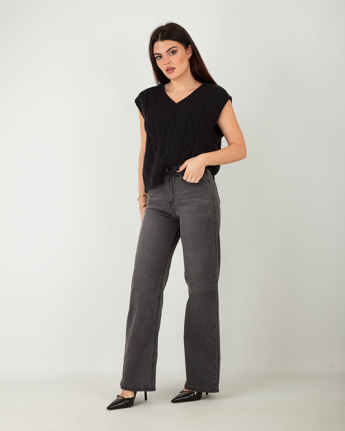 I jeans straight in denim grigio scuro sono pensati per la donna che ama un look casual ma curato. La vita alta valorizza la silhouette, mentre la linea dritta segue delicatamente le forme senza costringerle, garantendo comfort e libertà di movimento. La chiusura con zip e bottone singolo aggiunge un dettaglio essenziale e funzionale. Perfetti da abbinare a stivaletti con tacco o sneakers, sono ideali per creare outfit versatili e contemporanei, adatti a molteplici occasioni.