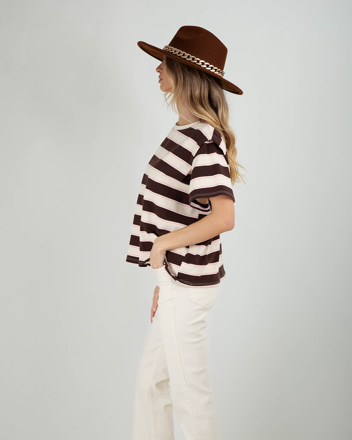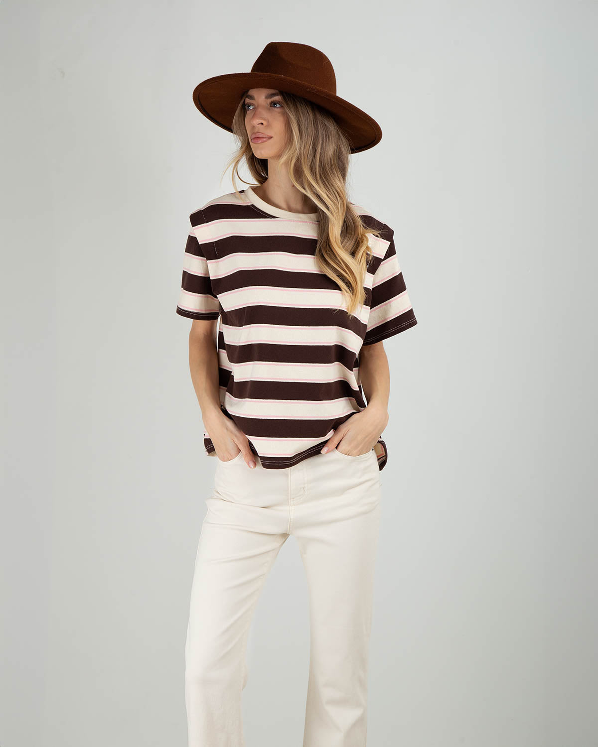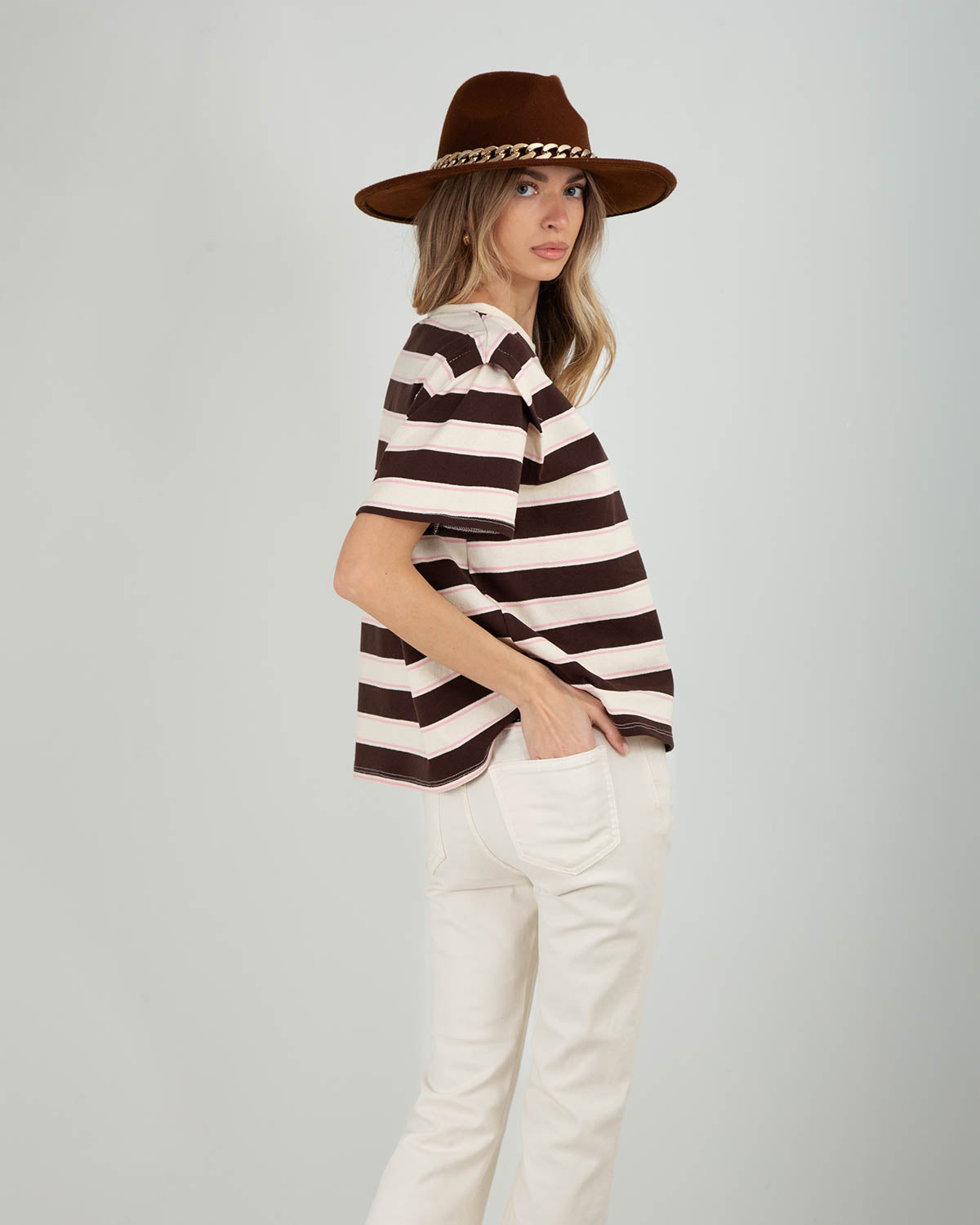 Questa t-shirt in cotone a righe è pensata per offrire comfort e stile in un unico capo. Il cotone morbido e traspirante la rende ideale per l’uso quotidiano, mentre la vestibilità over dona un fit ampio e rilassato, perfetto per look casual e moderni. Le maniche corte sono impreziosite da un dettaglio di cucitura a vista, che aggiunge carattere e un tocco ricercato a un capo essenziale. Facile da abbinare a jeans, pantaloni sartoriali o gonne, è la t-shirt ideale per creare outfit semplici ma sempre curati, da indossare dal giorno al tempo libero.