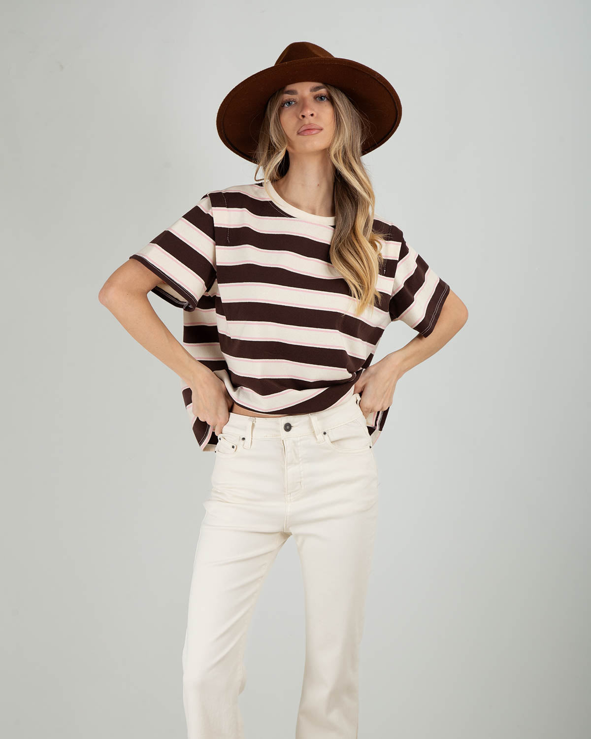 Dettagli: T-shirt in cotone. Fantasia a righe. Manica corta. Dettaglio cucitura sulla manica. Vestibilità over. Stile casual e contemporaneo