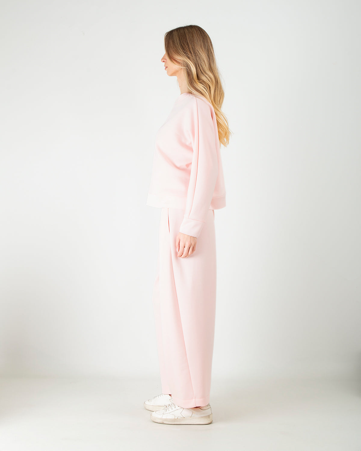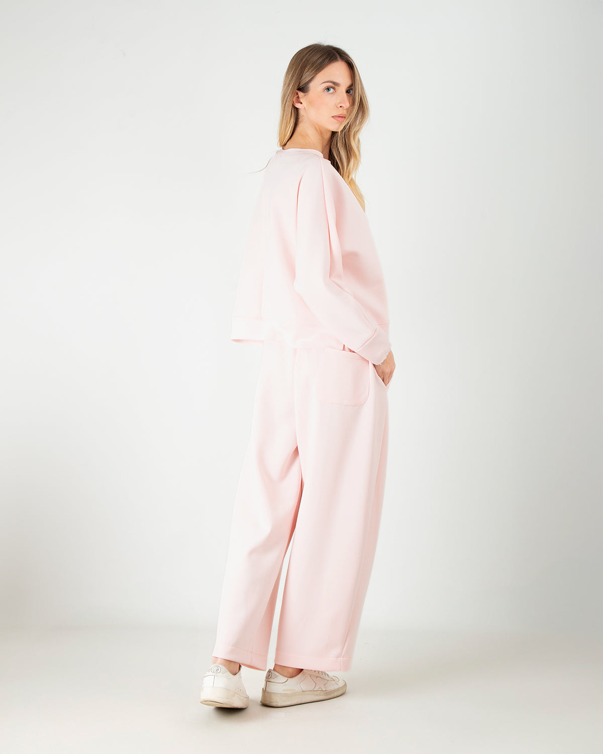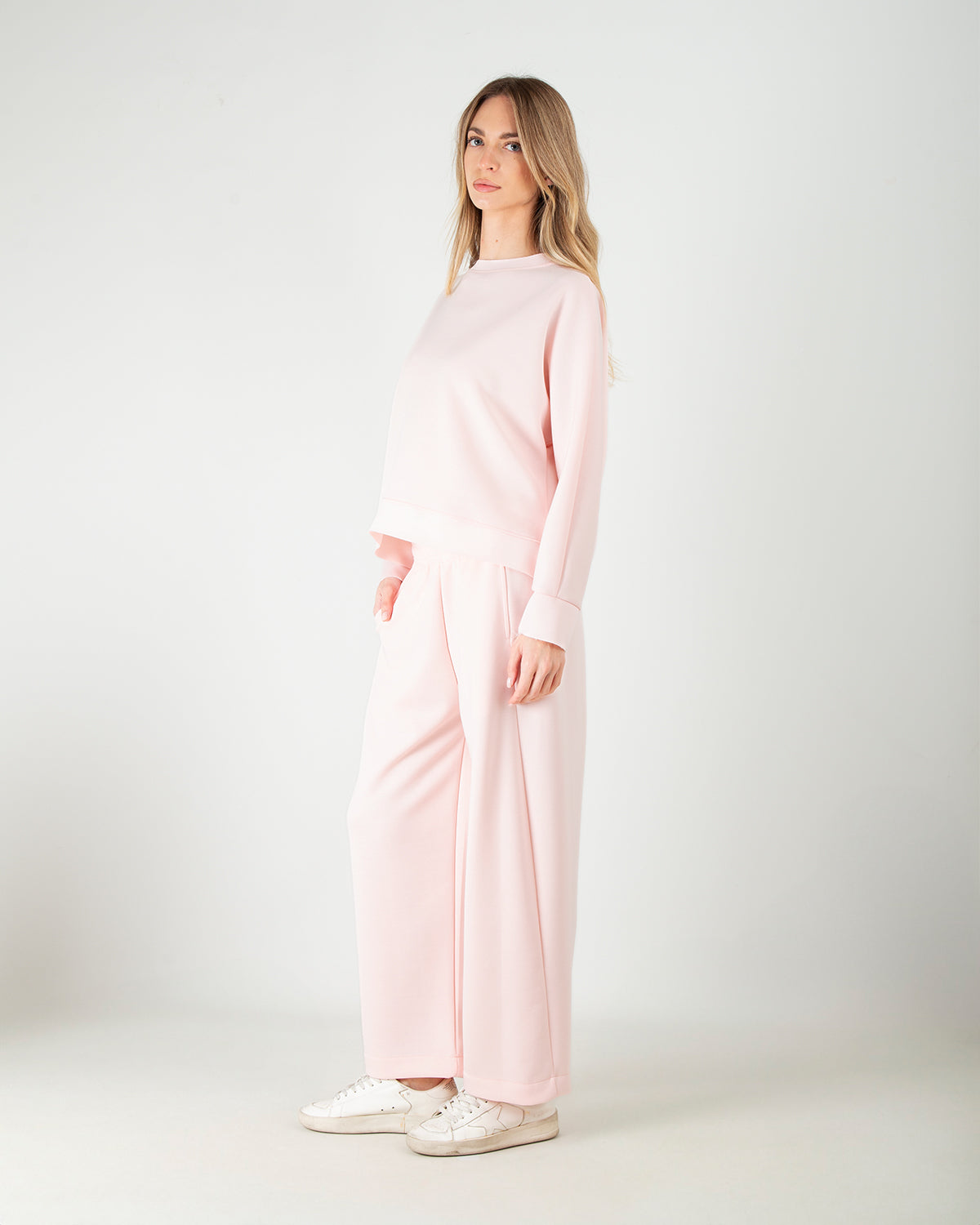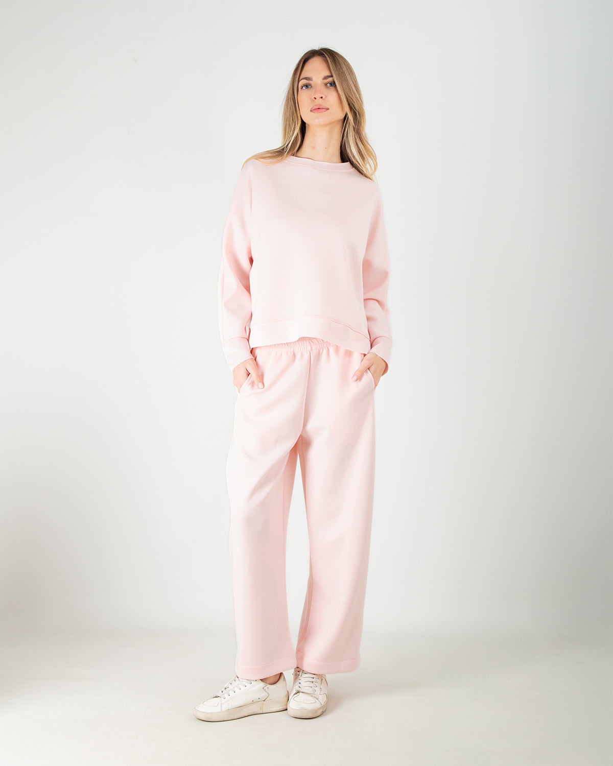 Questa tuta in scuba nasce per la donna che vuole unire stile e funzionalità con un’attitudine decisa. Il completo si compone di due pezzi versatili: una felpa crop dalla linea oversize e un pantalone baggy dal taglio rilassato. L’equilibrio perfetto tra sporty e sofisticato. Il tessuto scuba, compatto e leggermente strutturato, dona corpo al capo mantenendo una straordinaria morbidezza al tatto. Grazie alla sua elasticità multidirezionale, abbraccia la figura con naturalezza, garantendo un fit comodo per diverse taglie. La felpa cropped si appoggia sulla vita con eleganza, mentre il pantalone dalla linea ampia scivola morbido sulle gambe, completando il look con un twist urbano e moderno. Un set pensato per chi ama distinguersi, senza rinunciare alla praticità: ideale per il tempo libero, i viaggi o un brunch in città.