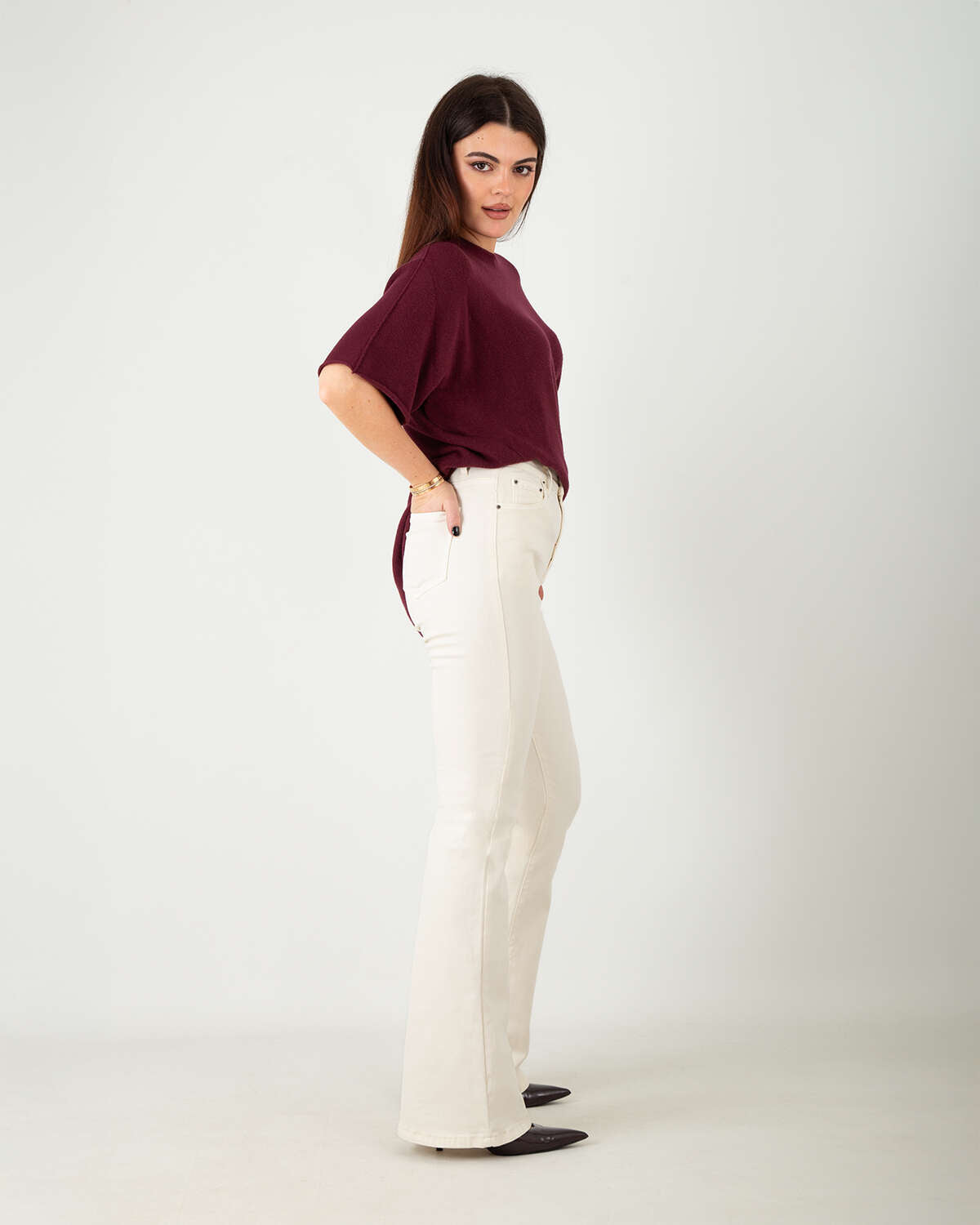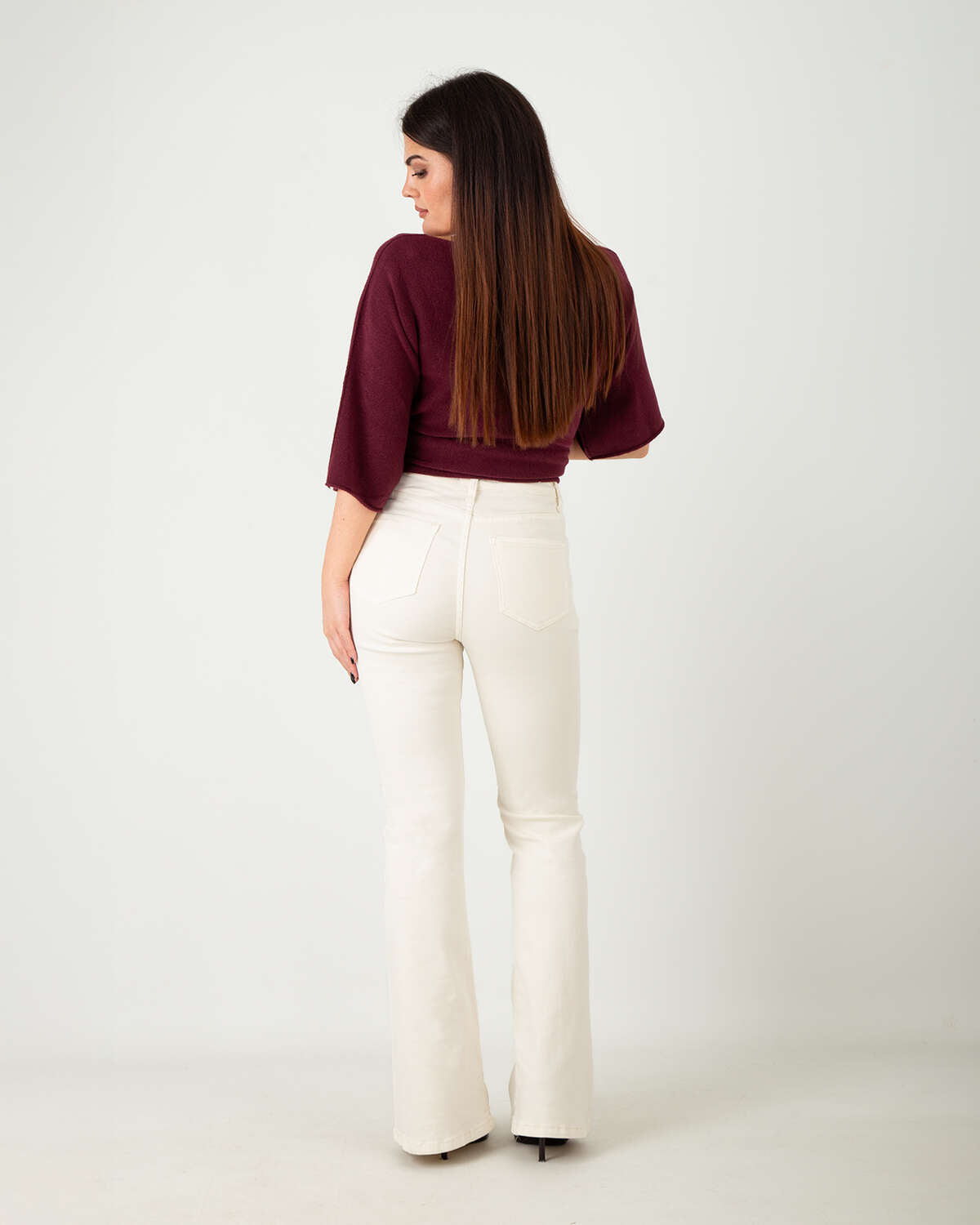 I jeans zampa sono pensati per la donna che ama unire comfort e stile senza tempo. La vita alta valorizza la silhouette, definendo il punto vita con eleganza, mentre la gamba a zampa fascia delicatamente le cosce e si apre dal ginocchio in giù, creando un effetto slanciante e rétro. Realizzati in un mix di cotone e elastan di alta qualità, garantiscono libertà di movimento e vestibilità perfetta. La chiusura con zip e bottone aggiunge un dettaglio classico e funzionale, rendendoli ideali da abbinare a top aderenti, bluse morbide o giacche strutturate per outfit sempre attuali e versatili.