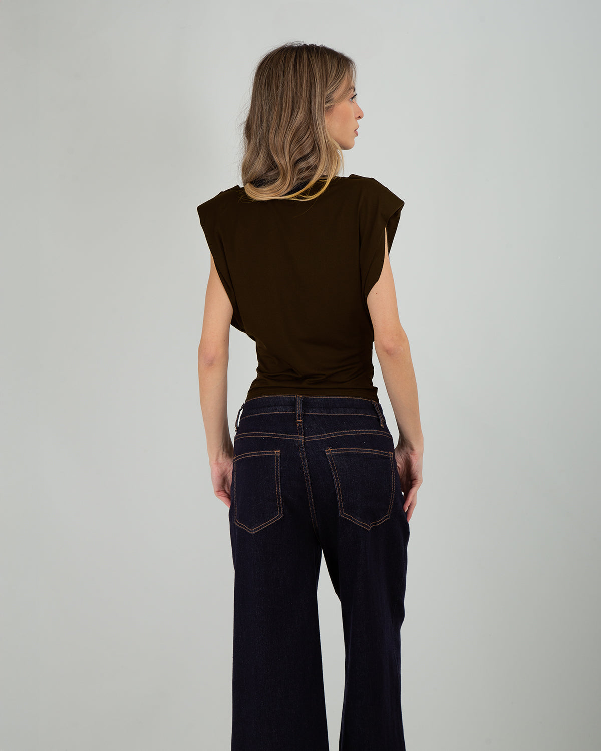 Il Top Smanicato Sbuffo è un capo elegante e versatile, ideale per accompagnarti in ogni occasione. Le spalline imbottite donano struttura alla parte superiore, definendo le spalle e creando una linea moderna e decisa. Il drappeggio sul davanti è studiato per creare armonia e movimento, valorizzando il busto con un effetto sofisticato e femminile. La vestibilità sfiancata segue delicatamente le forme, esaltando la silhouette senza costringere. Perfetto da abbinare a pantaloni sartoriali, gonne o denim, è il top ideale da indossare sia di giorno che di sera, adattandosi con stile a look eleganti o più casual chic.