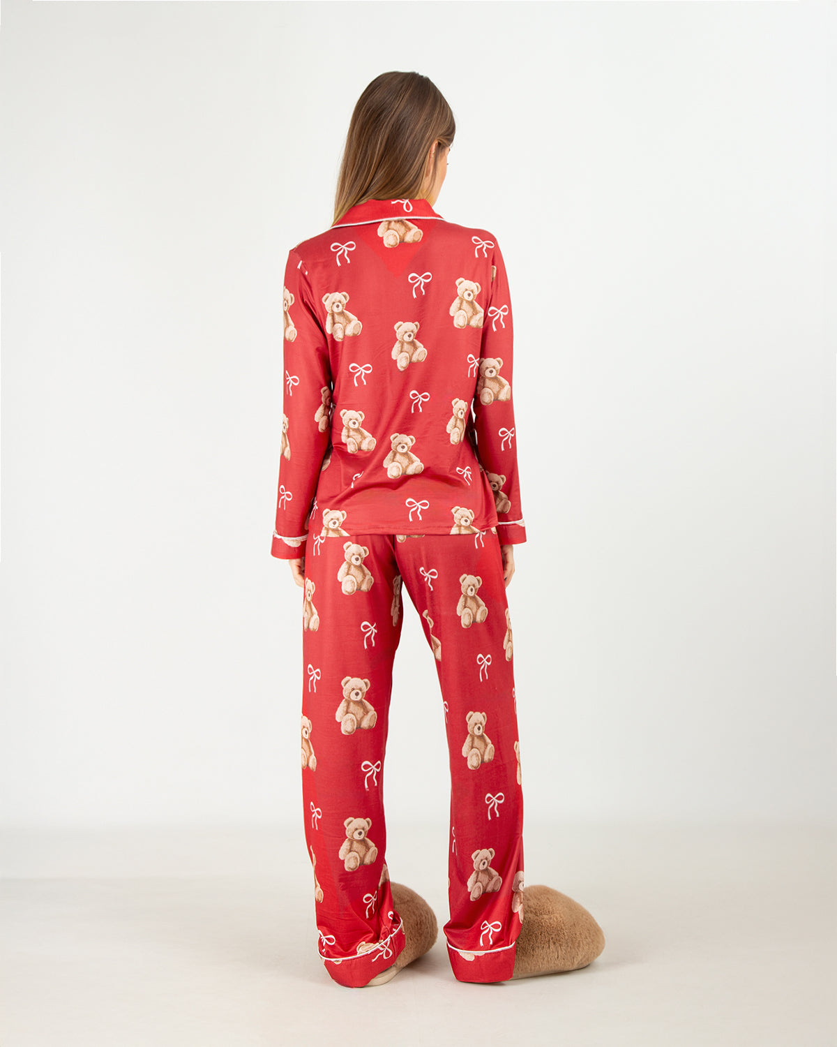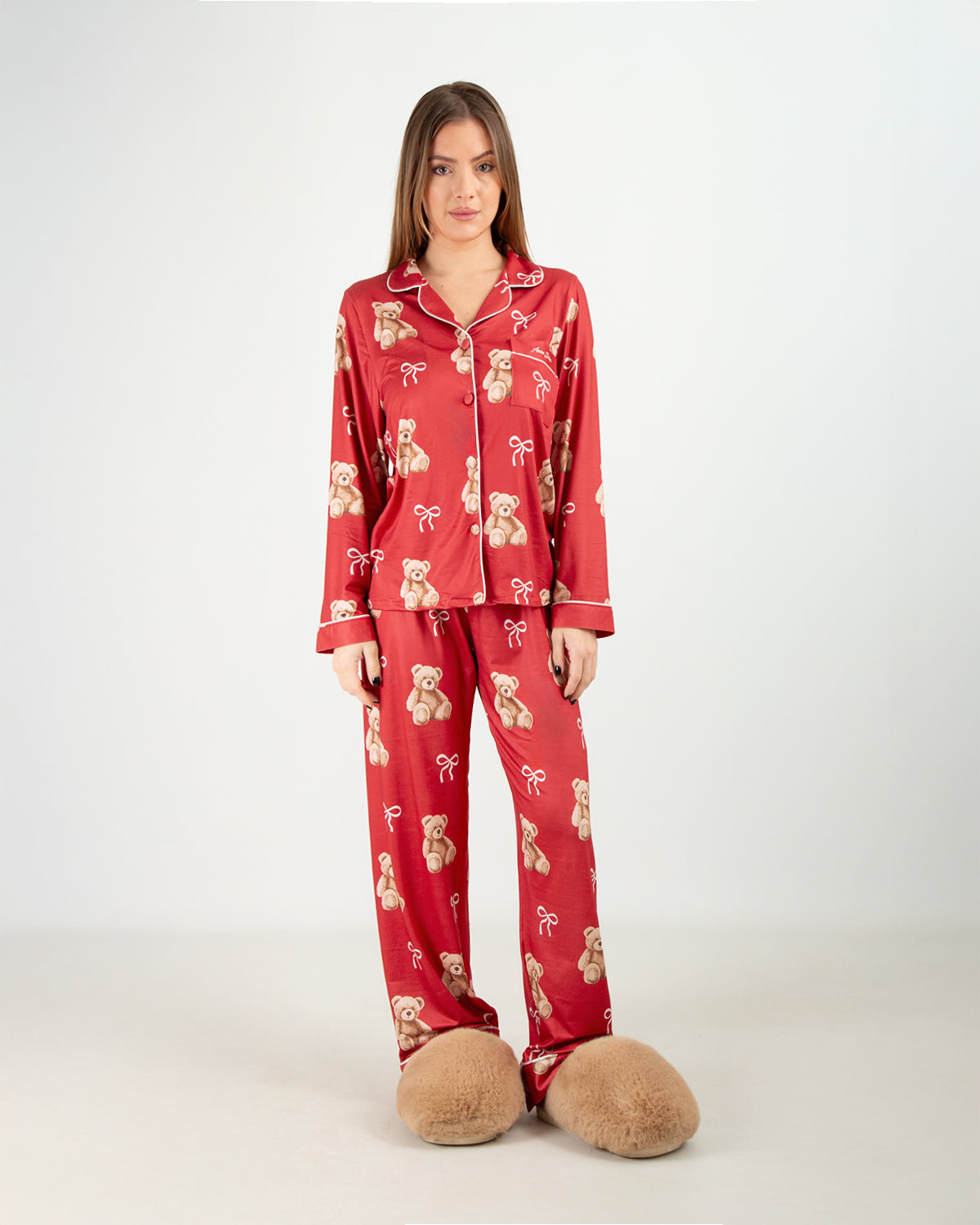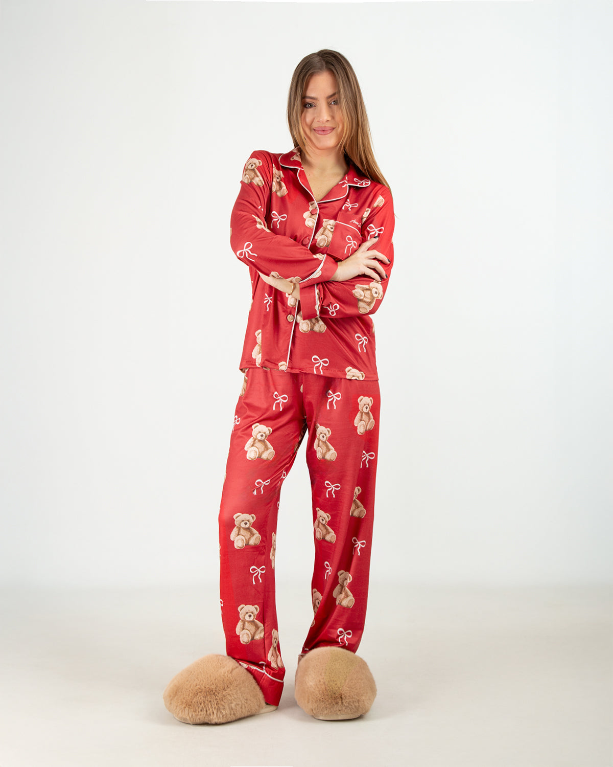 Dettagli: Pigiama due pezzi. Tessuto morbido e comodo in misto viscosa. Pattern con orsetti e fiocchetti. Ideale per momenti di relax e riposo. Perfetto come regalo, già confezionato con fiocco.