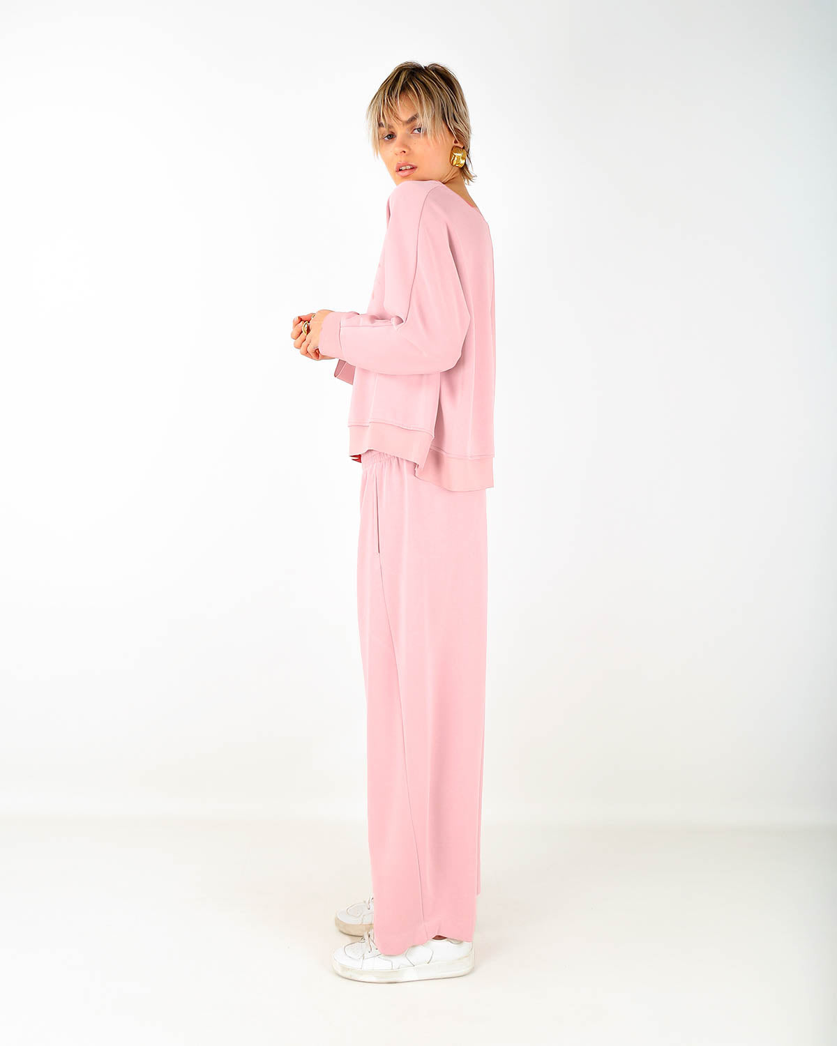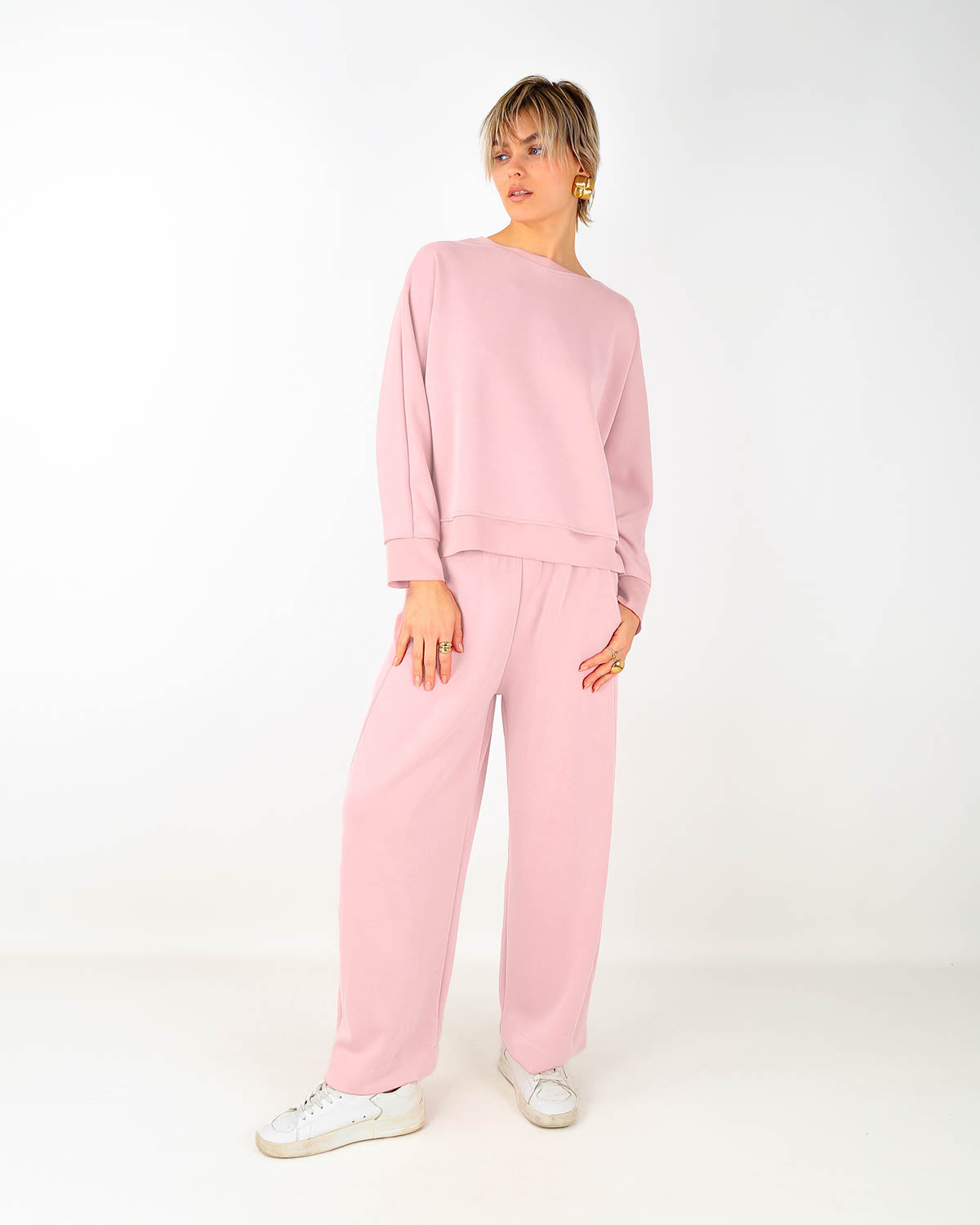 Questa tuta in scuba nasce per la donna che vuole unire stile e funzionalità con un’attitudine decisa. Il completo si compone di due pezzi versatili: una felpa crop dalla linea oversize e un pantalone baggy dal taglio rilassato. L’equilibrio perfetto tra sporty e sofisticato. Il tessuto scuba, compatto e leggermente strutturato, dona corpo al capo mantenendo una straordinaria morbidezza al tatto. Grazie alla sua elasticità multidirezionale, abbraccia la figura con naturalezza, garantendo un fit comodo per diverse taglie. La felpa cropped si appoggia sulla vita con eleganza, mentre il pantalone dalla linea ampia scivola morbido sulle gambe, completando il look con un twist urbano e moderno. Un set pensato per chi ama distinguersi, senza rinunciare alla praticità: ideale per il tempo libero, i viaggi o un brunch in città.