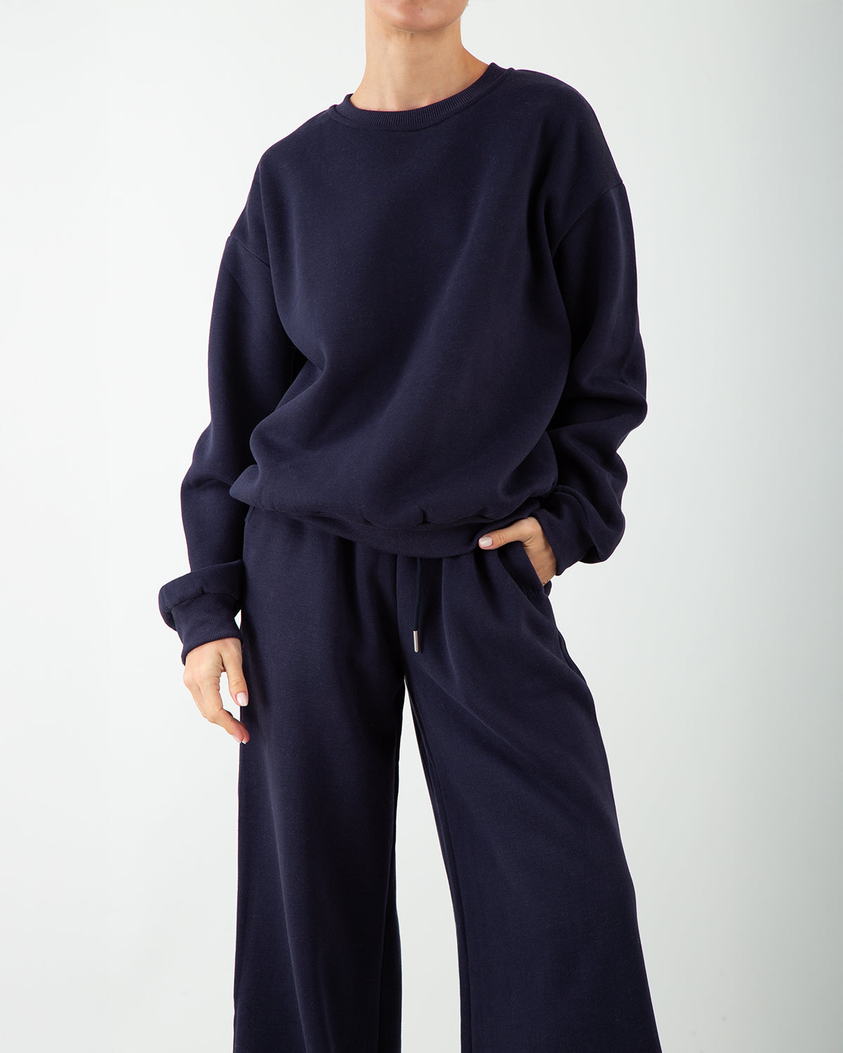 Comfort e stile si incontrano in questa tuta in felpa dal design essenziale. Il fit over dona un’allure rilassata ma curata, perfetta per muoversi con libertà senza rinunciare a un tocco sofisticato. Il set è composto da una felpa dalla linea morbida e pantaloni ampi a gamba dritta, ideali per un look contemporaneo e disinvolto. Un capo versatile che si adatta con naturalezza ai momenti di relax come alle uscite in città.
