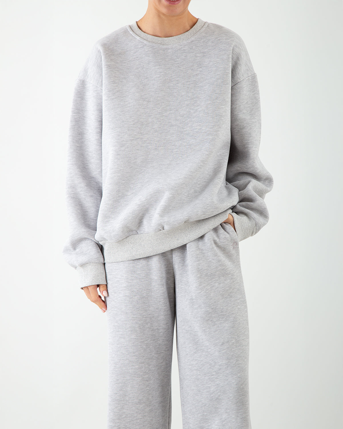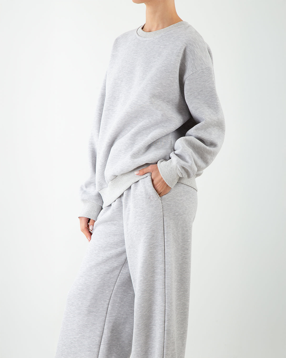 Dettagli: Tuta in felpa con interno morbido. Felpa girocollo dalla linea over, con polsini e fondo a costine. Pantaloni ampi con vita elasticizzata, coulisse regolabile e tasche laterali. Logo ricamato tono su tono vicino alla tasca.
