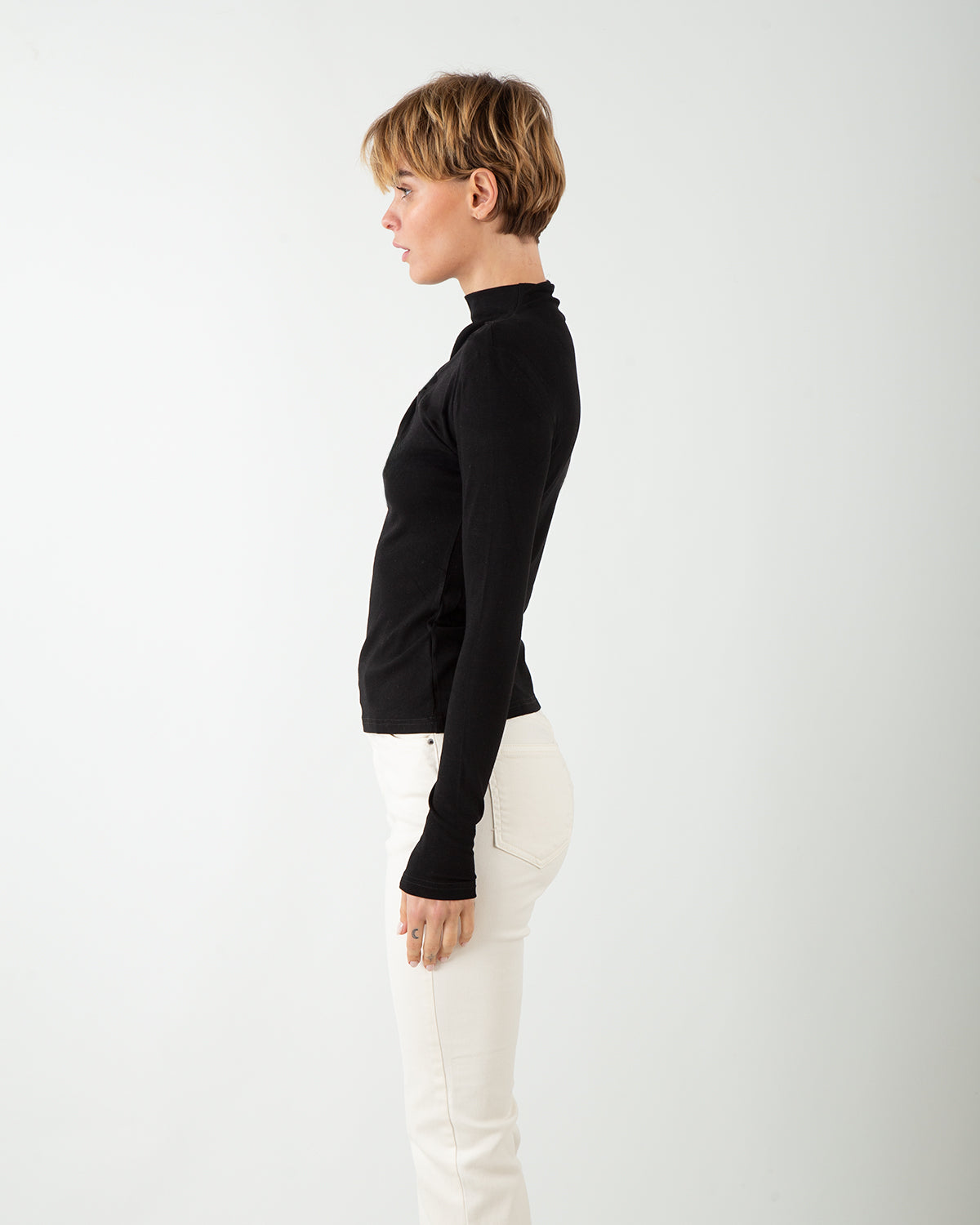 Ausgeschnittener, geknoteter Mock Sweater Schwarz