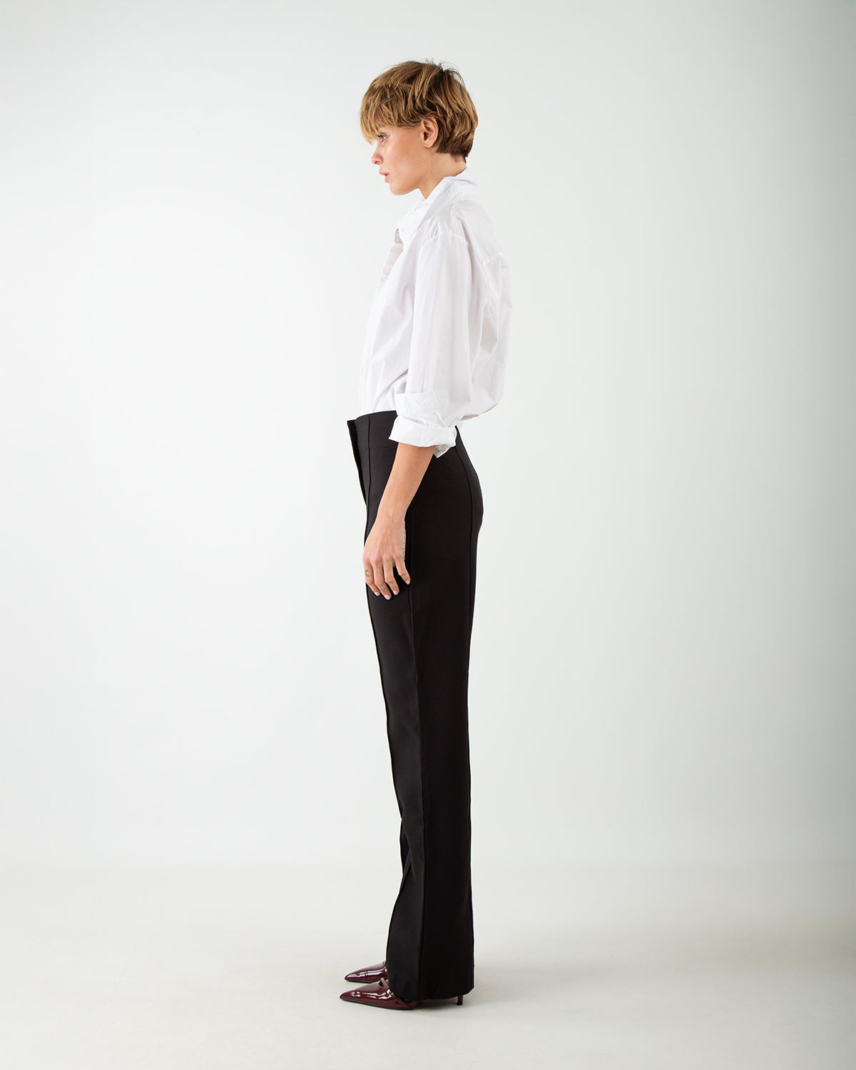Details: Ausgestellte Hose aus weicher Viskosemischung. Mittelhohe Taille. Verdeckter Reißverschluss. Mittlere Naht auf der Vorderseite, die die Figur verschlankt. Leicht ausgestellter Saum.