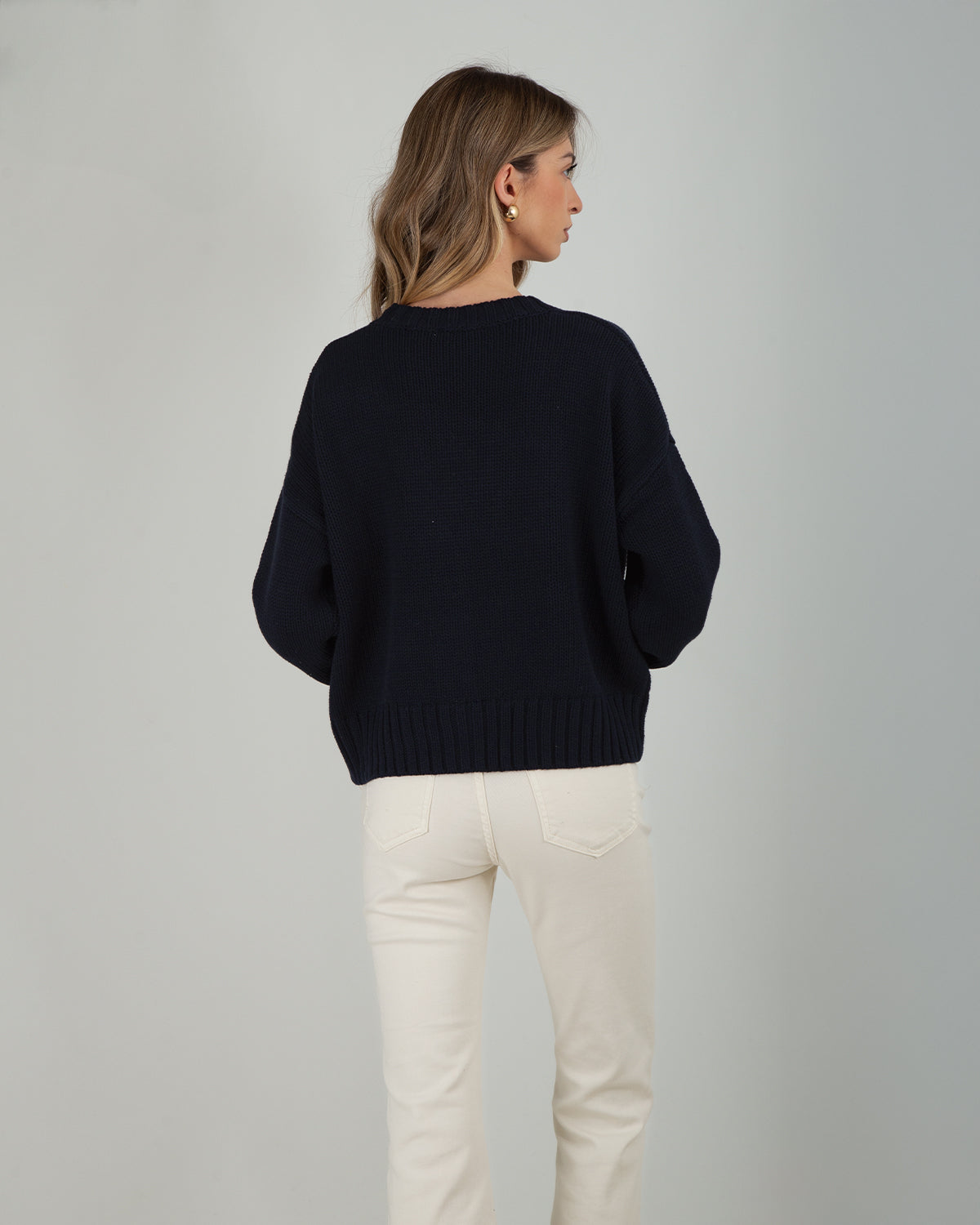 Cardigan over in 100% cotone con taschine frontali e chiusura a tre bottoni.