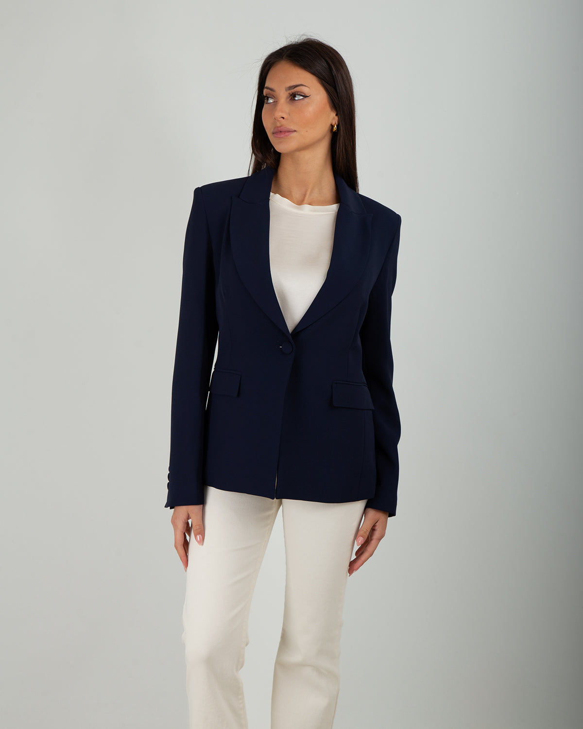 La Giacca Fluido unisce stile classico e dettagli moderni, pensata per chi desidera un capo femminile e strutturato. Le spalline imbottite donano definizione alle spalle e slanciano la silhouette, mentre il tessuto fluido permette libertà di movimento e un effetto morbido sul corpo. La giacca è foderata, garantendo comfort e vestibilità perfetta, e presenta una chiusura con bottone rivestito che aggiunge un tocco elegante e ricercato. Ideale da abbinare a pantaloni fluidi, gonne o jeans per look da ufficio, eventi o occasioni eleganti. Un capo versatile che unisce raffinatezza, comfort e stile, adatto a outfit formali o a combinazioni più casual chic.