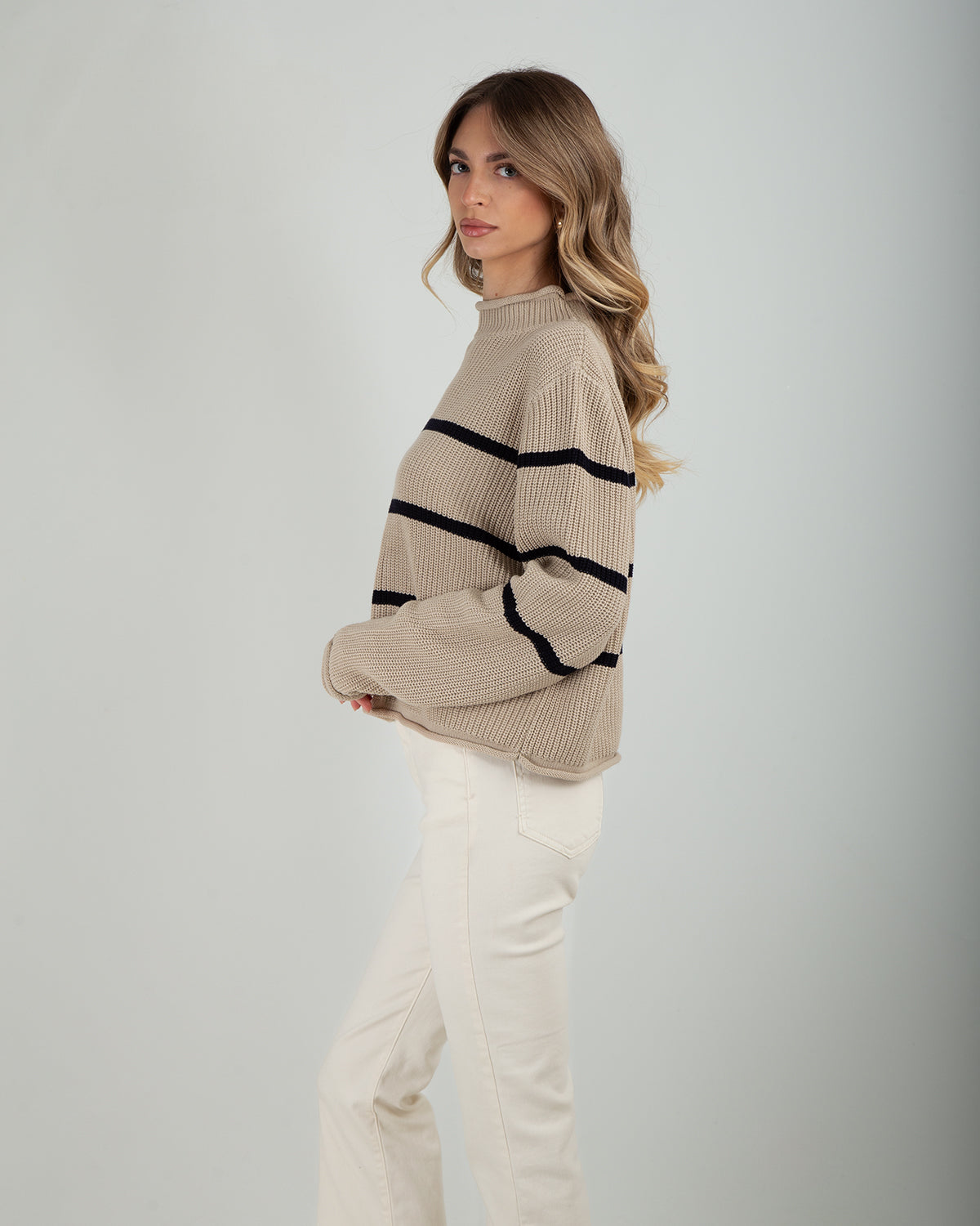 Maglia Righe 100% Cotone Beige