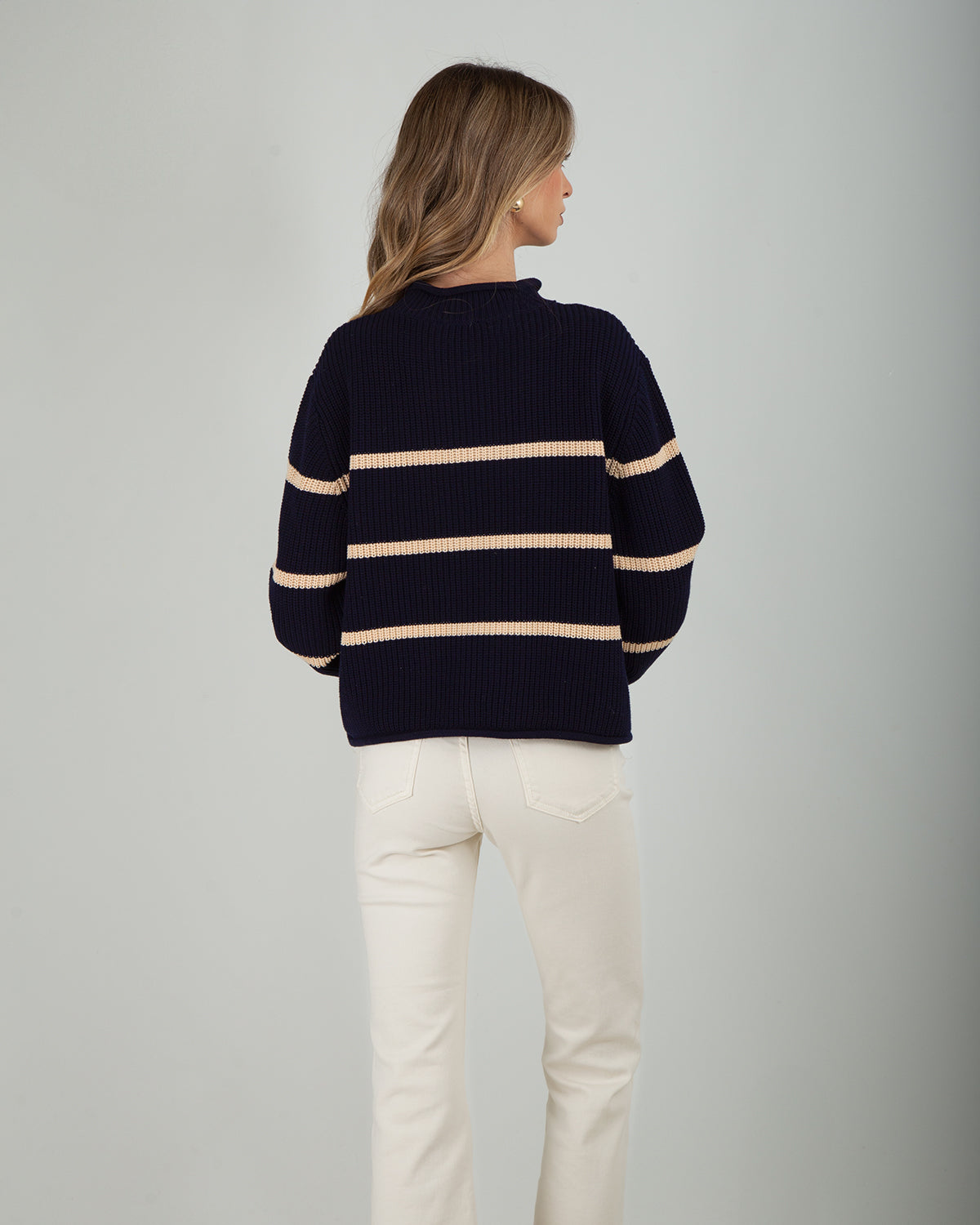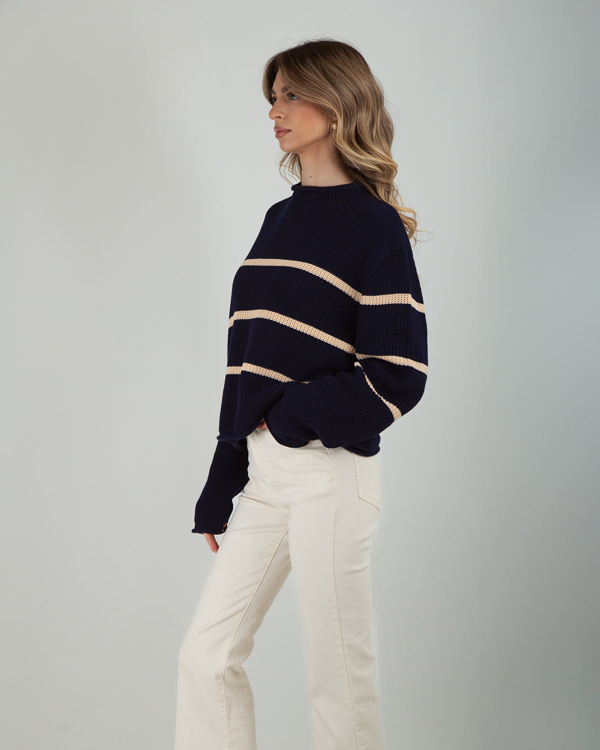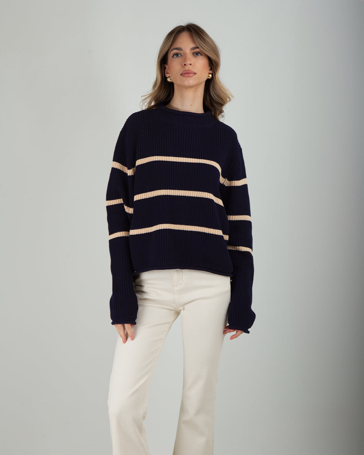 La Maglia Righe100% Cotone unisce comfort e stile in un design delicato e femminile. Realizzata in cotone naturale, garantisce traspirabilità e una sensazione leggera sulla pelle, ideale per la mezza stagione. La trama effetto uncinetto dona al capo un aspetto artigianale e raffinato, mentre la fantasia a righe aggiunge un tocco dinamico e contemporaneo. I polsini e il colletto arricciati completano il design con un dettaglio romantico e ricercato, valorizzando la linea del capo. Perfetta da abbinare a jeans, gonne o pantaloni, è ideale per creare look casual chic o outfit più femminili e curati.