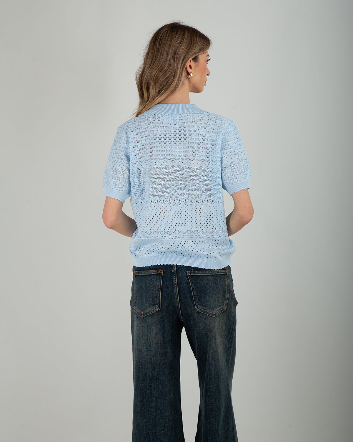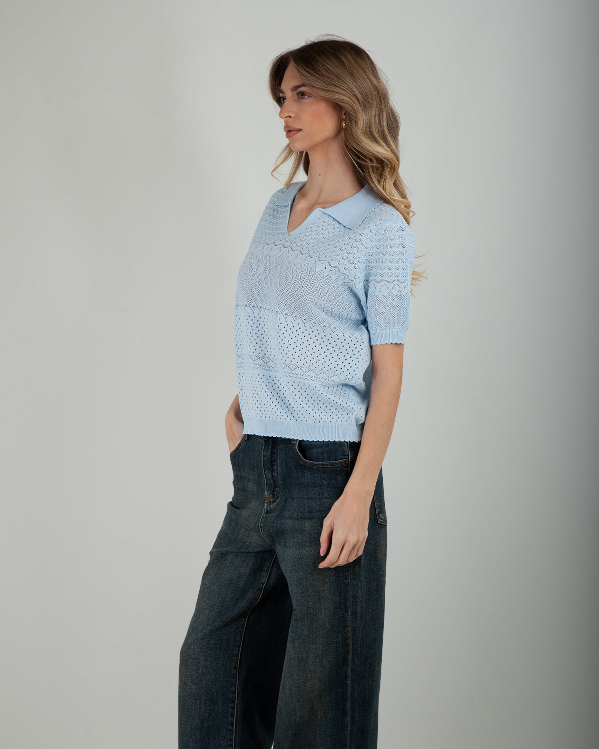 Polo traforata con colletto, leggera e ideale per i look di mezza stagione.