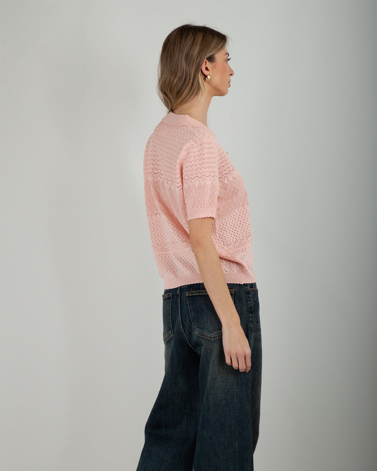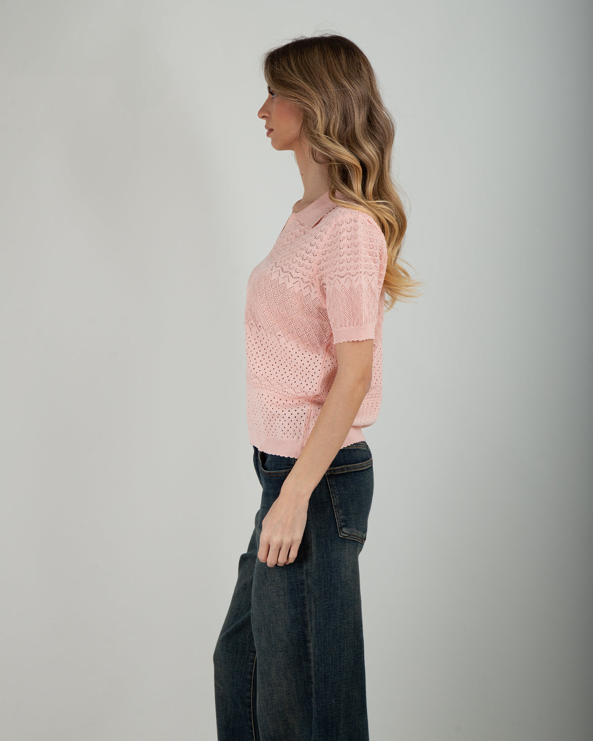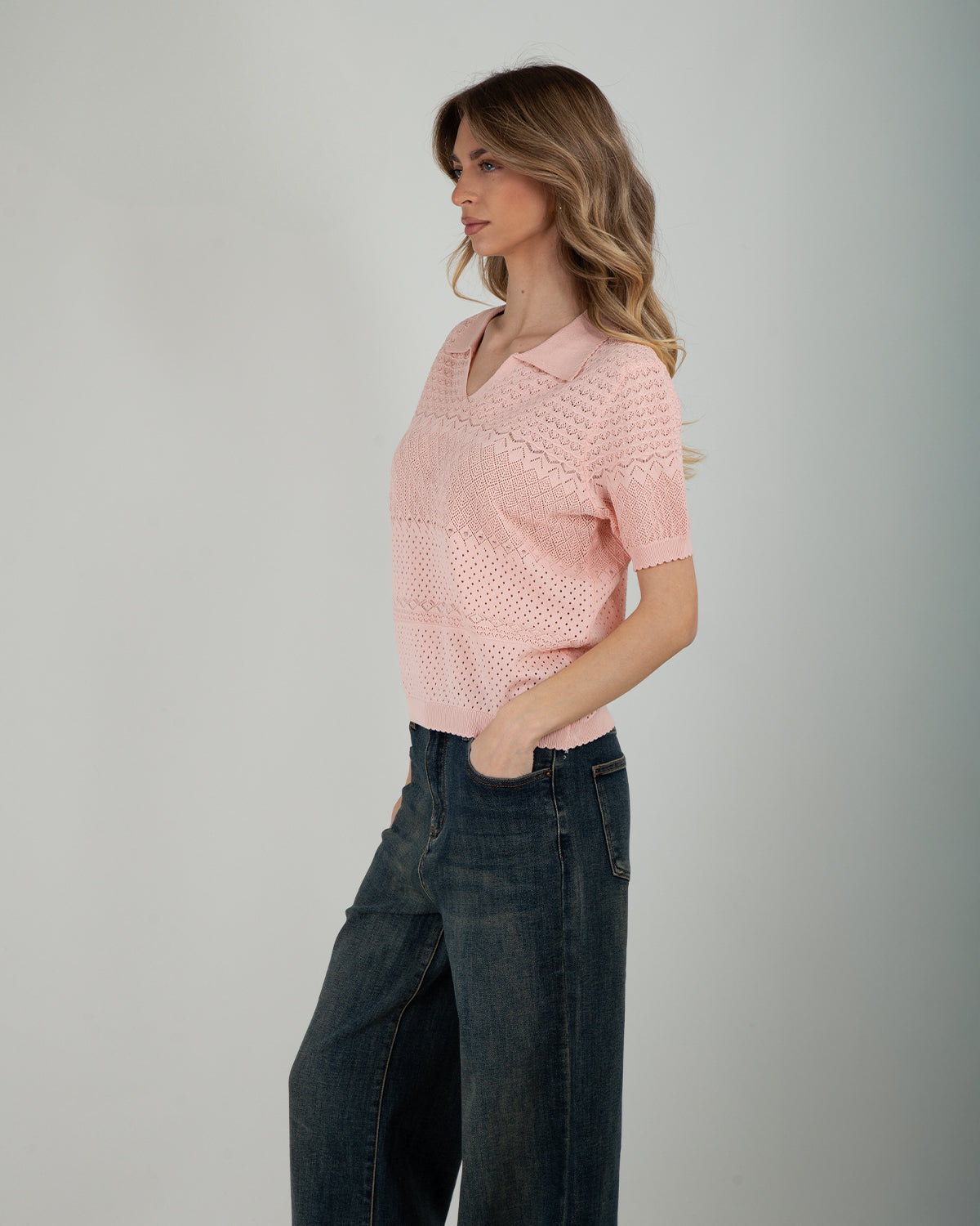 Polo traforata con colletto, leggera e ideale per i look di mezza stagione.