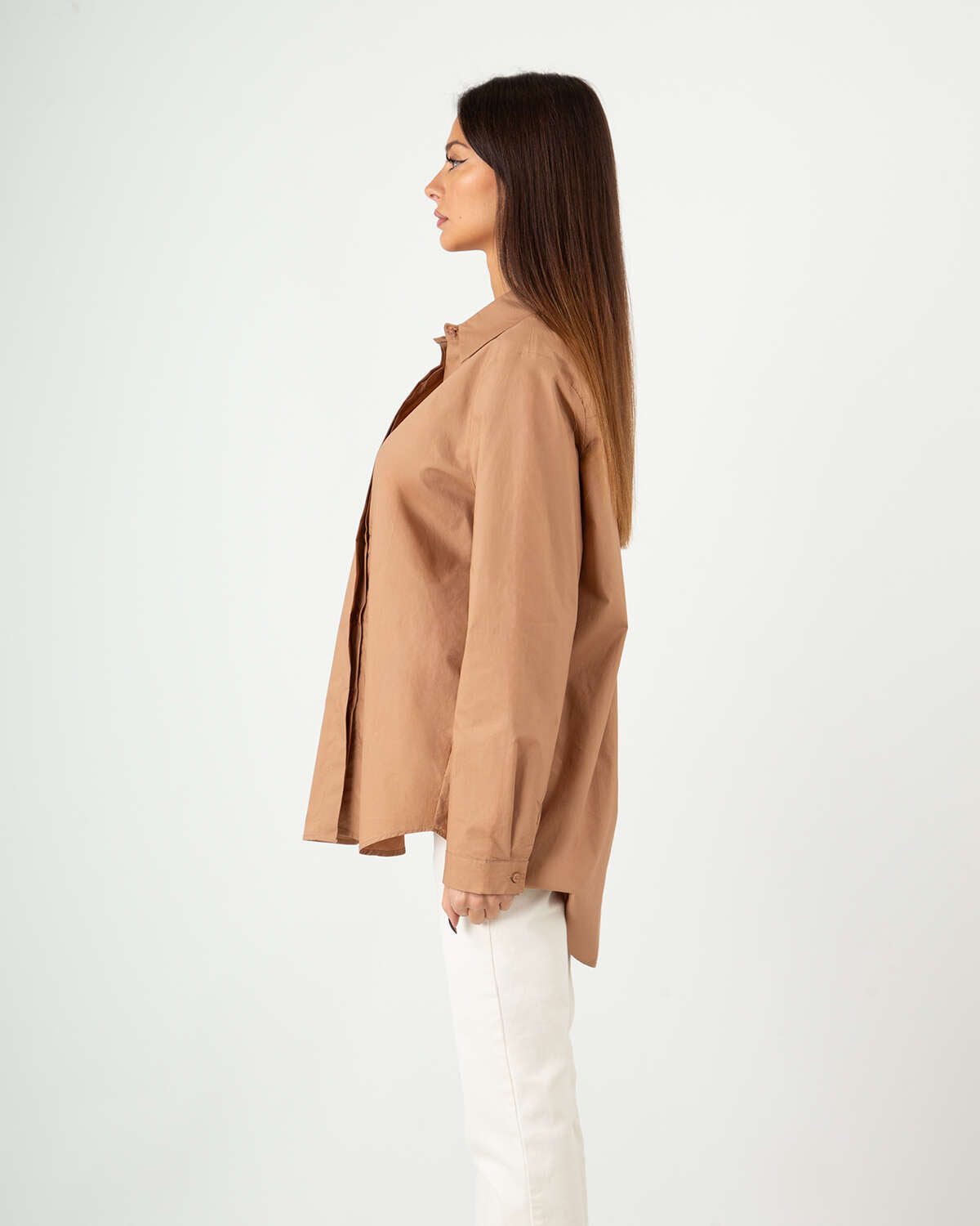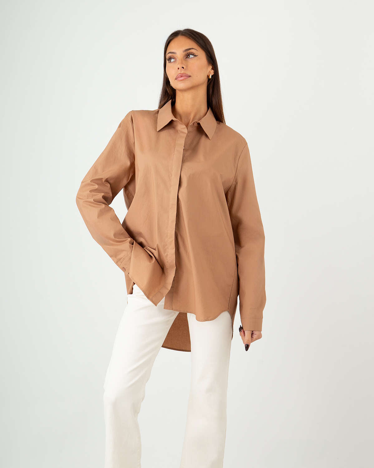 Questa camicia basic in popeline di cotone è un omaggio alla semplicità raffinata. Un capo senza tempo, pensato per accompagnarti con naturalezza dalla routine quotidiana alle occasioni più informali, senza mai rinunciare allo stile. La silhouette morbida, con spalle scese e maniche lunghe, dona un’allure rilassata ma curata. Il colletto classico e l’abbottonatura frontale mantengono un’eleganza lineare, mentre il fondo arrotondato – più lungo sul retro – aggiunge un dettaglio moderno e funzionale. Facile da indossare sia dentro che fuori dai pantaloni, è la camicia ideale per creare look versatili, stratificati o minimal. Un passe-partout da avere sempre nell’armadio, da reinterpretare stagione dopo stagione.
