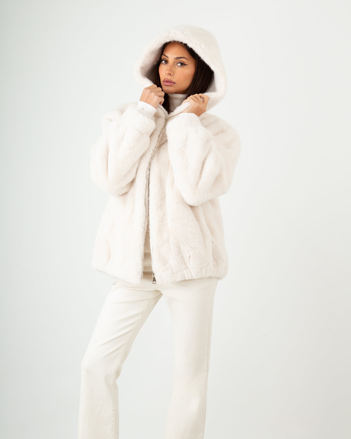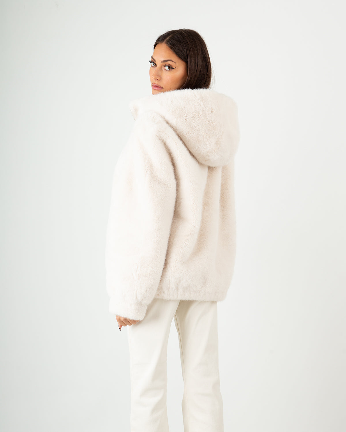 Questa giacca corta in eco-pelliccia è pensata per chi desidera un capo avvolgente, morbido e cruelty-free, senza rinunciare a un look moderno e sofisticato. Il design con cappuccio ampio aggiunge un tocco funzionale e contemporaneo, perfetto per affrontare le giornate più fredde con eleganza. La silhouette è comoda ma definita, con una vestibilità regular che si adatta facilmente a diverse fisicità. La chiusura frontale con zip rende il capo pratico e versatile, ideale da indossare sia su look eleganti che su outfit più casual chic. La texture soffice dell’eco-pelliccia valorizza ogni look con un tocco di lusso etico e attuale. Un must-have di stagione per chi ama distinguersi con stile, rispettando l’ambiente.