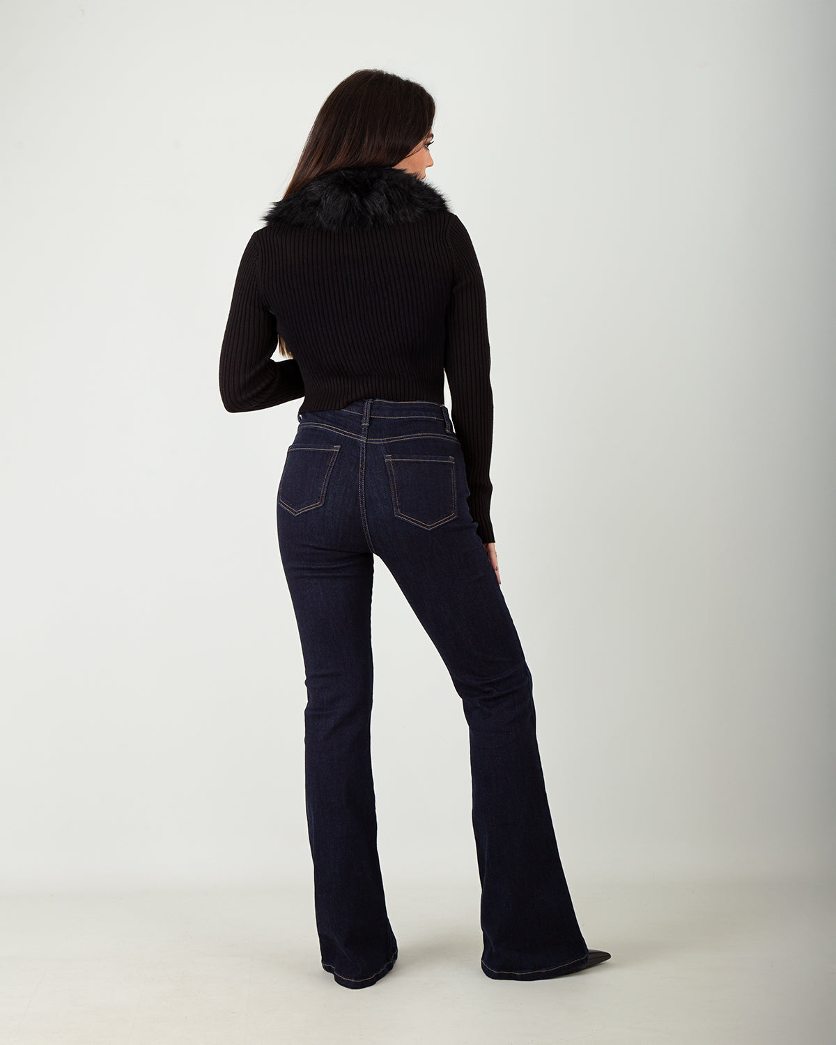 I jeans zampa sono pensati per la donna che ama unire comfort e stile senza tempo. La vita alta valorizza la silhouette, definendo il punto vita con eleganza, mentre la gamba a zampa fascia delicatamente le cosce e si apre dal ginocchio in giù, creando un effetto slanciante e rétro. Realizzati in un mix di cotone e elastan di alta qualità, garantiscono libertà di movimento e vestibilità perfetta. La chiusura con zip e bottone aggiunge un dettaglio classico e funzionale, rendendoli ideali da abbinare a top aderenti, bluse morbide o giacche strutturate per outfit sempre attuali e versatili.