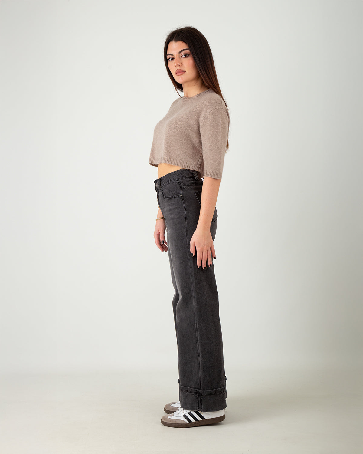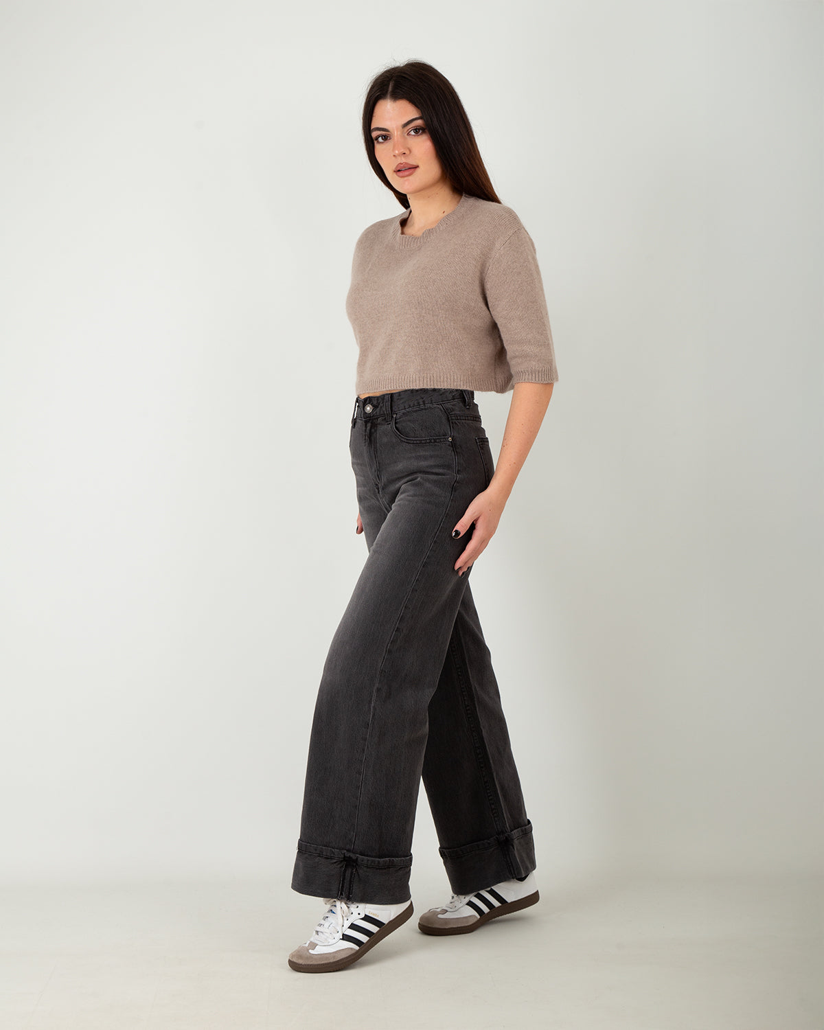 I jeans palazzo con risvolto sono l’alleato ideale per la donna che cerca un capo comodo, strutturato e ricco di personalità. La vita alta valorizza la figura e slancia la silhouette, mentre la gamba ampia e fluida dona movimento e un tocco sofisticato. Il risvolto al fondo aggiunge un dettaglio distintivo e moderno, perfetto per dare carattere anche ai look più minimal. Un capo versatile da indossare con top aderenti o blazer oversize, per un outfit chic e contemporaneo.
