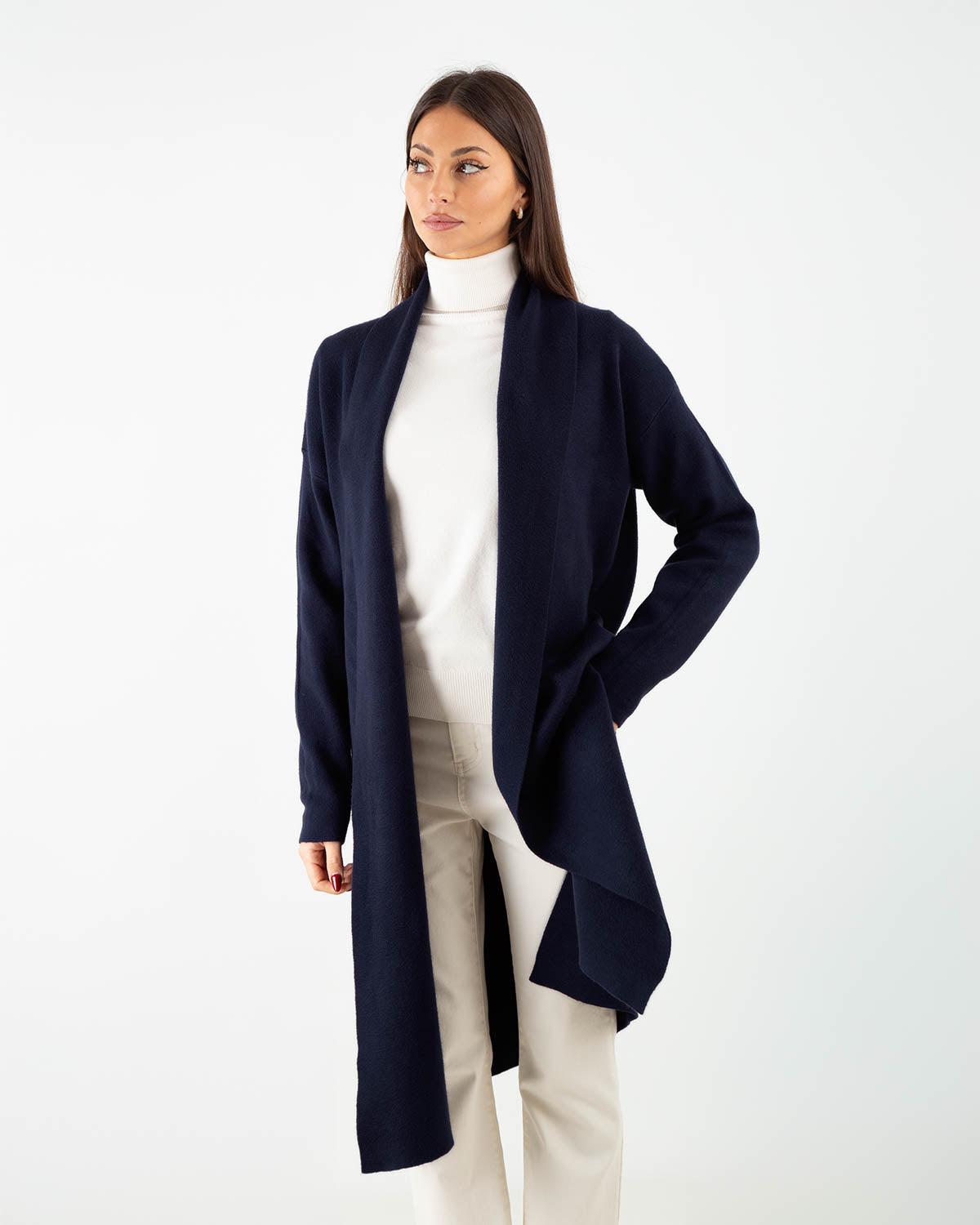 Realizzato in morbido e caldo misto viscosa, questo maxi cardigan avvolge con leggerezza e comfort, mantenendo un’estetica pulita e minimale. Il taglio over e la costruzione aperta lo rendono un capo versatile e facile da sovrapporre, mentre i due piccoli spacchi laterali aggiungono movimento e armonia alla linea. Un alleato perfetto per le giornate fredde, ideale da indossare su maglie basiche, camicie o abiti per un’eleganza rilassata che non rinuncia allo stile.