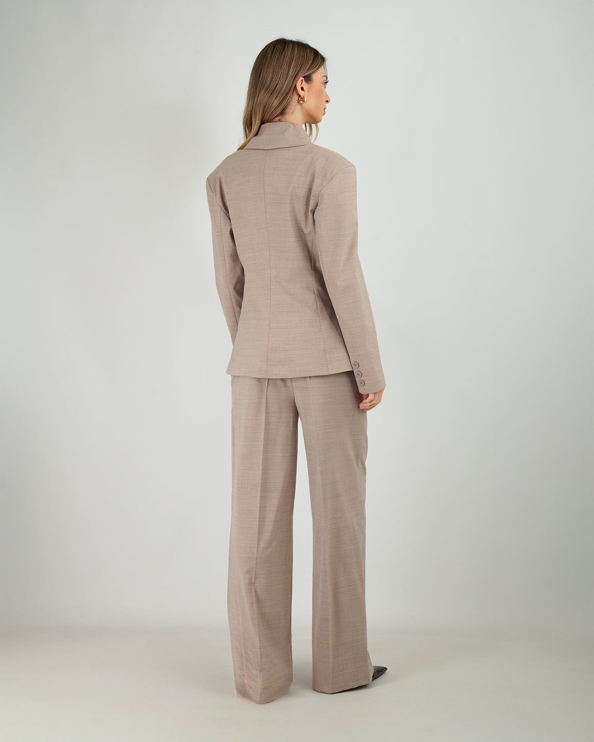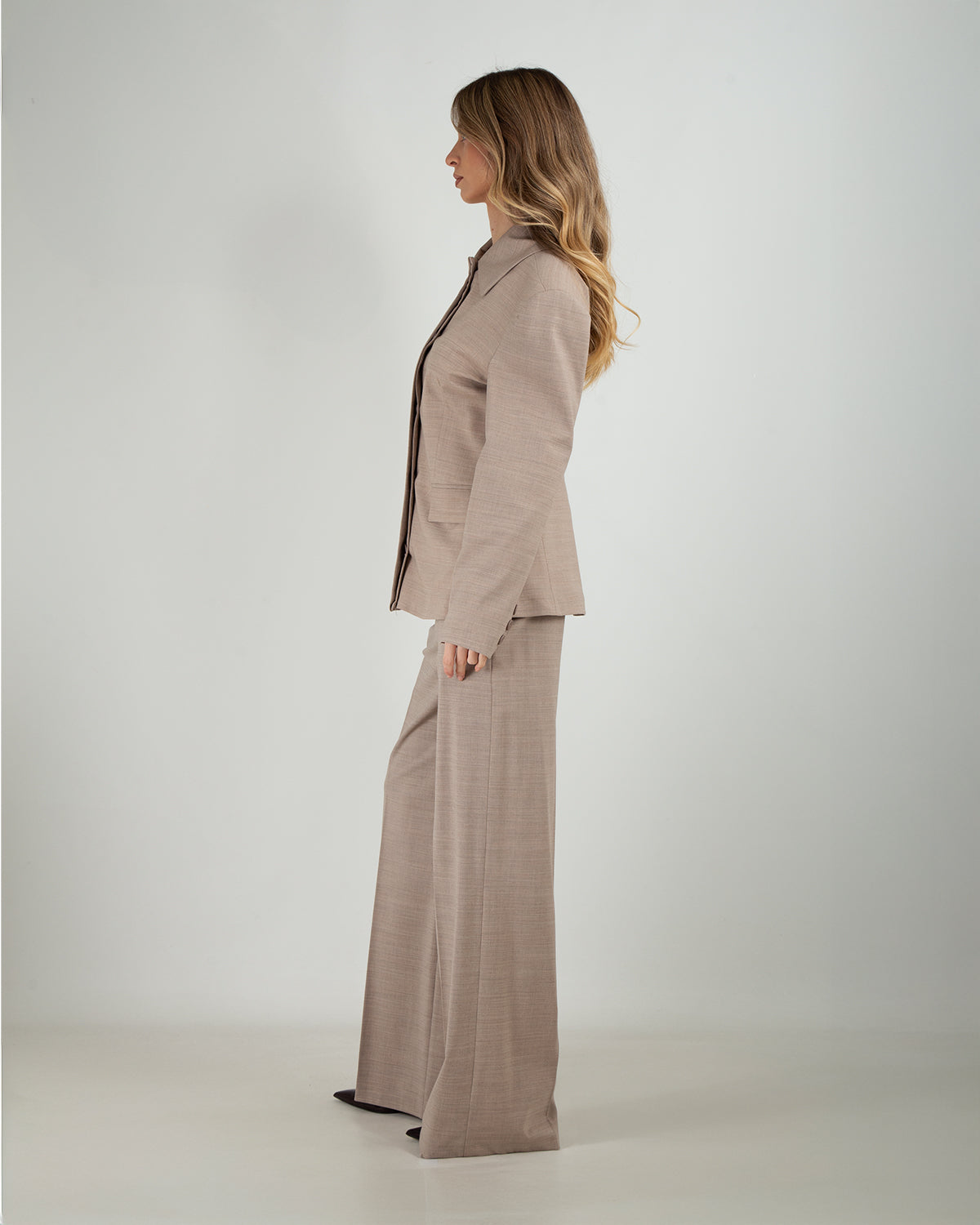 Un tailleur elegante e moderno, pensato per valorizzare la silhouette con linee pulite e dettagli contemporanei.