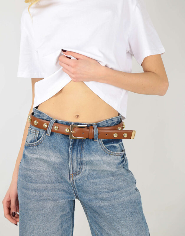 Cintura Con Borchie Marrone