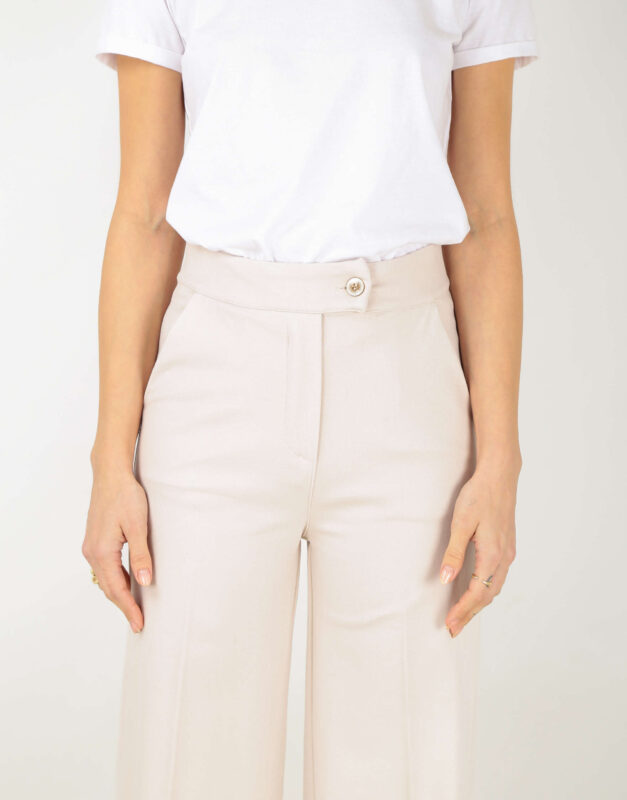Pantalone lungo a palazzo con elastico in vita e laccio regolabile
