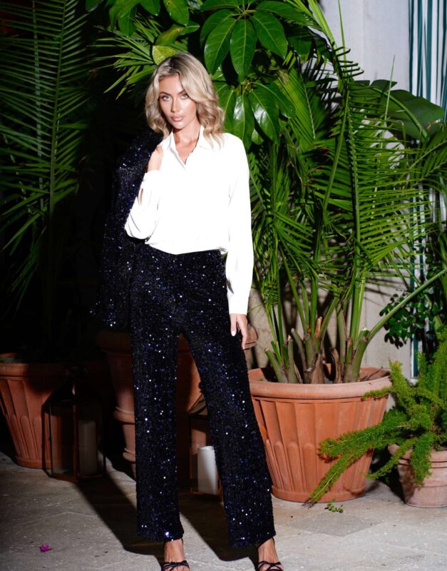 La modella indossa la taglia S/M del pantalone