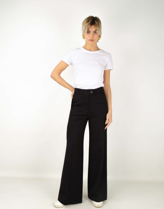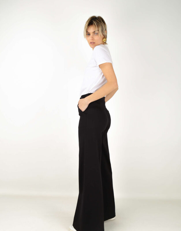 Pantalone palazzo lungo con elastico in vita e laccio regolabile per una vestibilità comoda